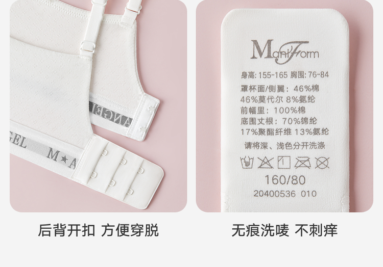 曼妮芬舒适棉莫无钢圈带杯短款背心少女初中生文胸
