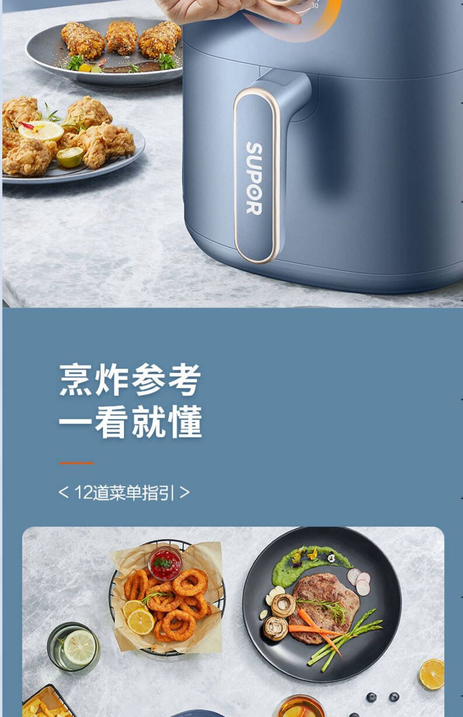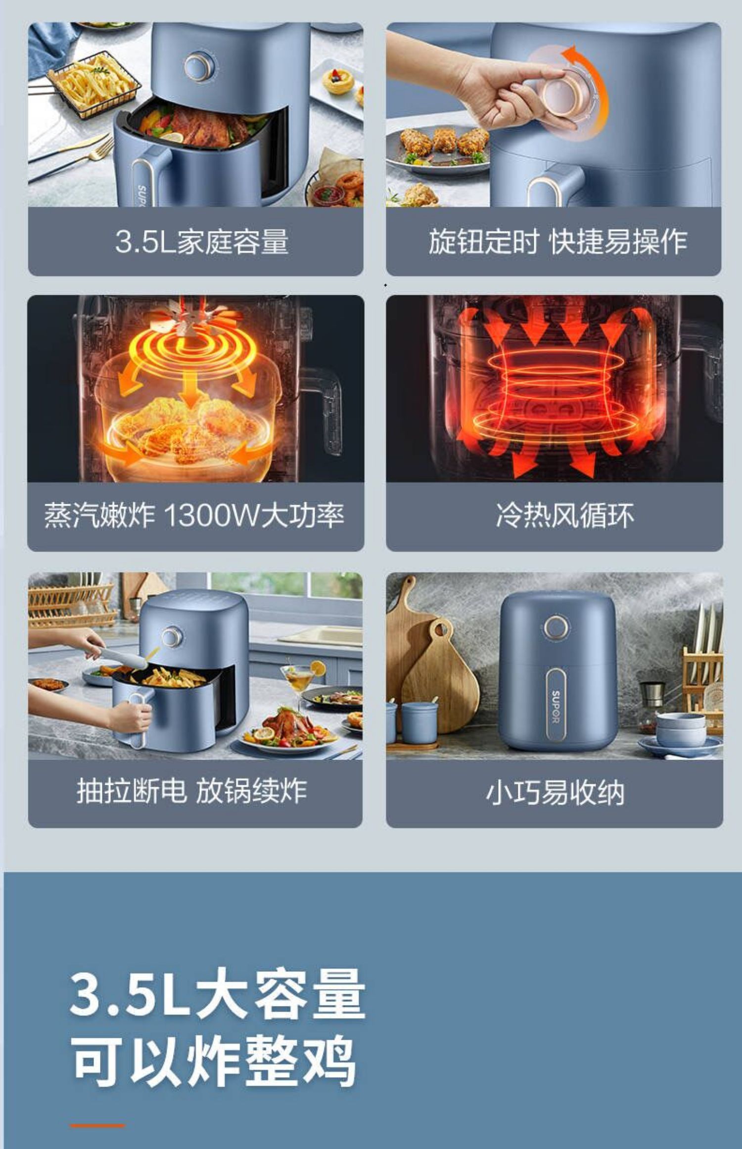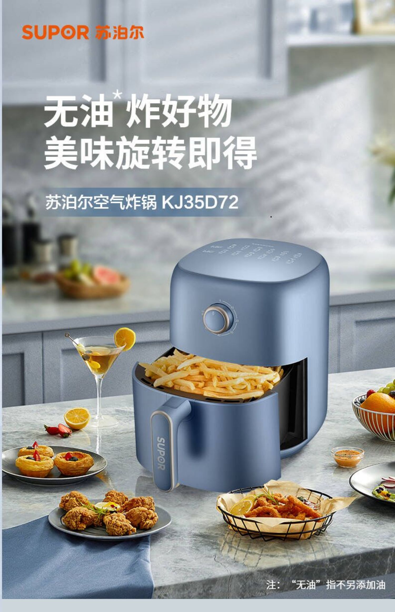 苏泊尔空气炸锅KJ35D72蒸气嫩炸抽拉断电3.5L容量家庭的好帮手