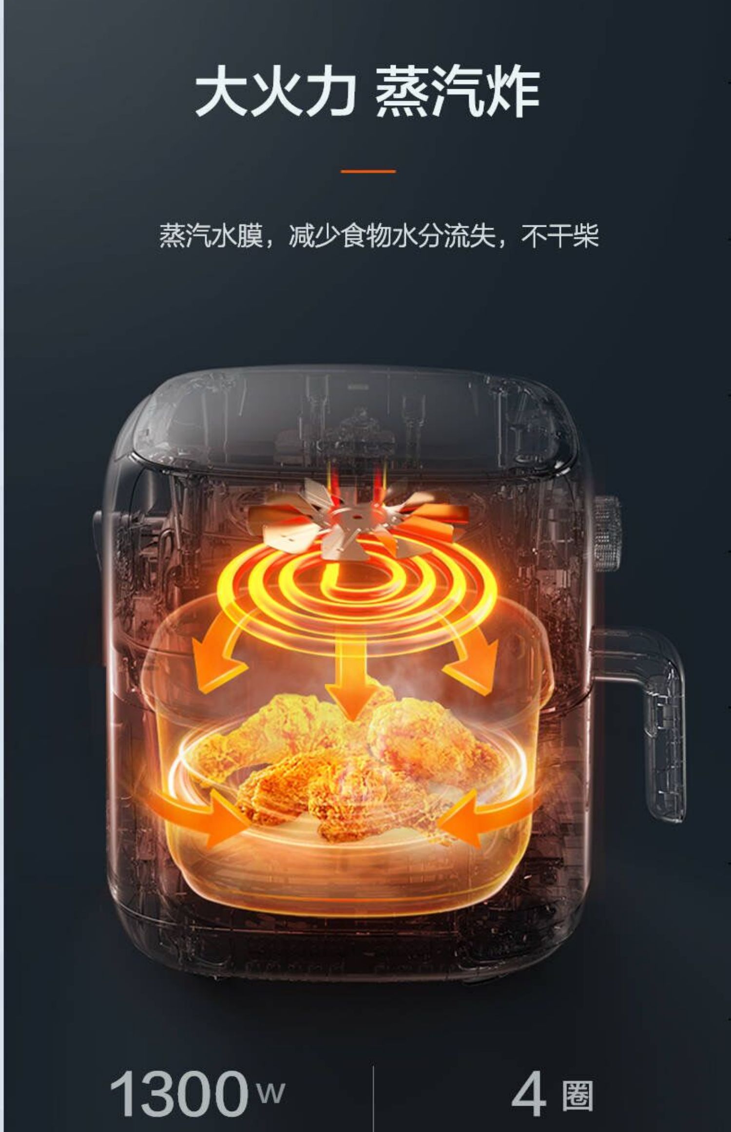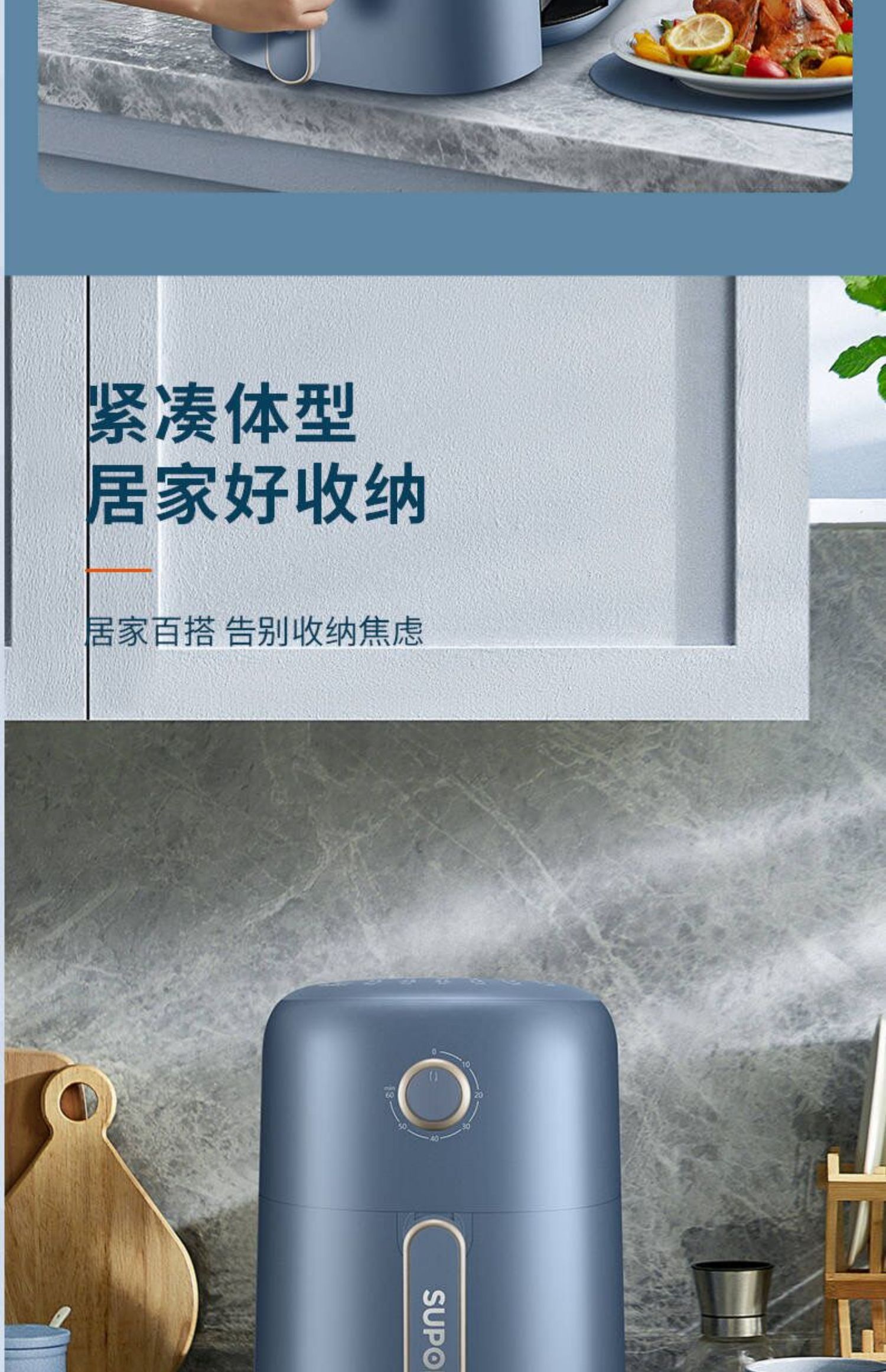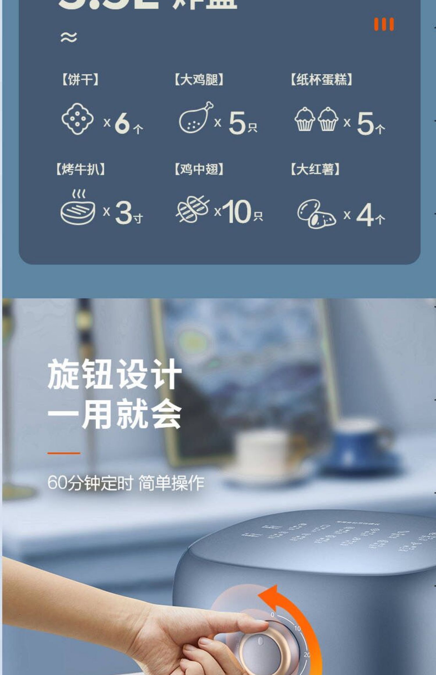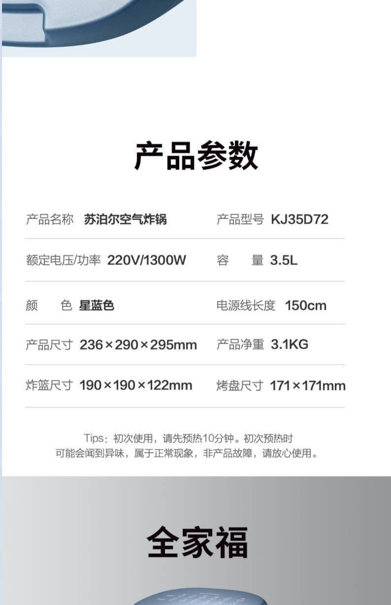 苏泊尔空气炸锅KJ35D72蒸气嫩炸抽拉断电3.5L容量家庭的好帮手