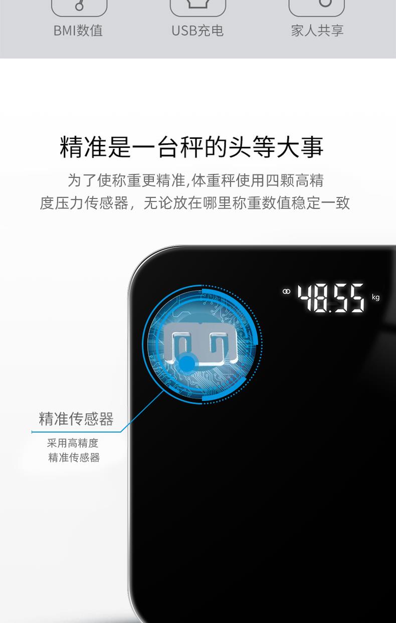 体重秤精准智能高精度体脂称称重小型电子称家用人体秤充电电子秤款式称电池测脂肪减肥计耐用宿舍女生