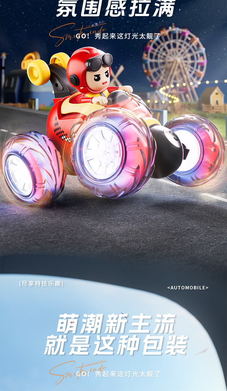 儿童遥控汽车翻滚特技车翻斗电动越野玩具男孩3一6岁1小扭变赛车2