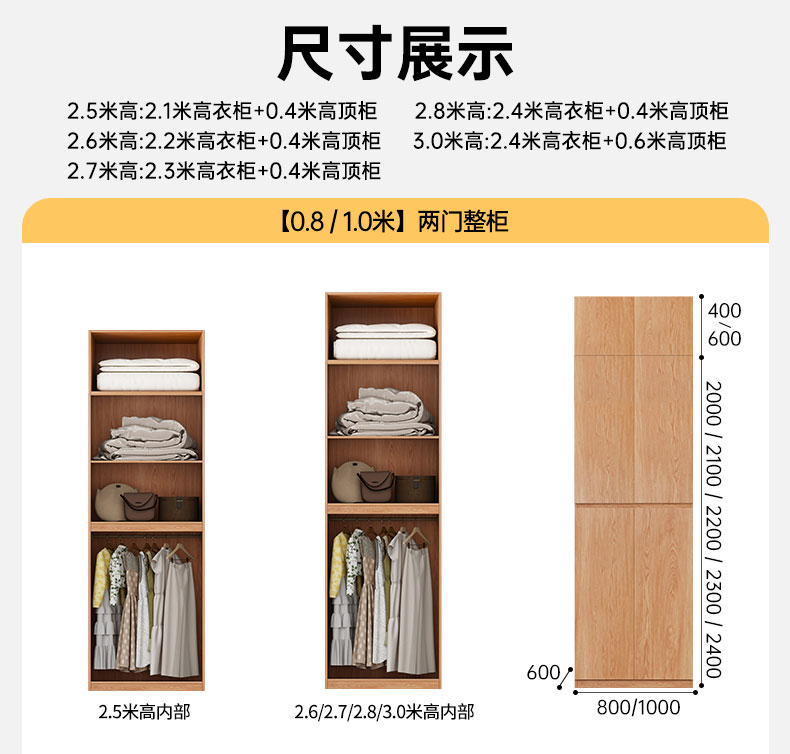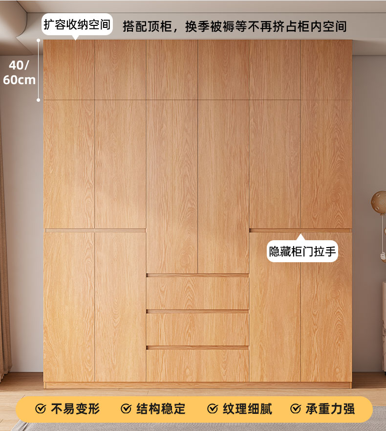 橡木定制全实木衣柜加高顶柜2.5-3米家用卧室主卧2024爆款分段式