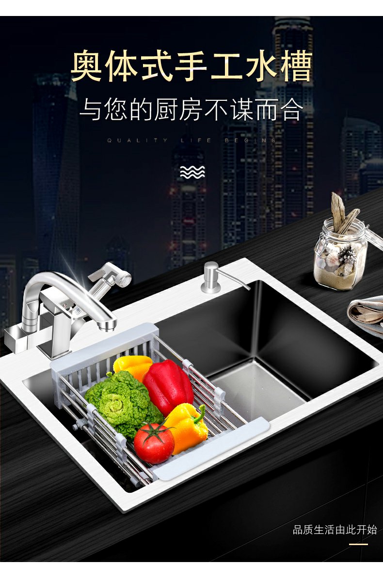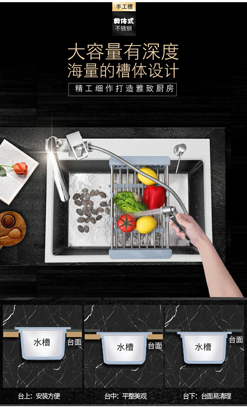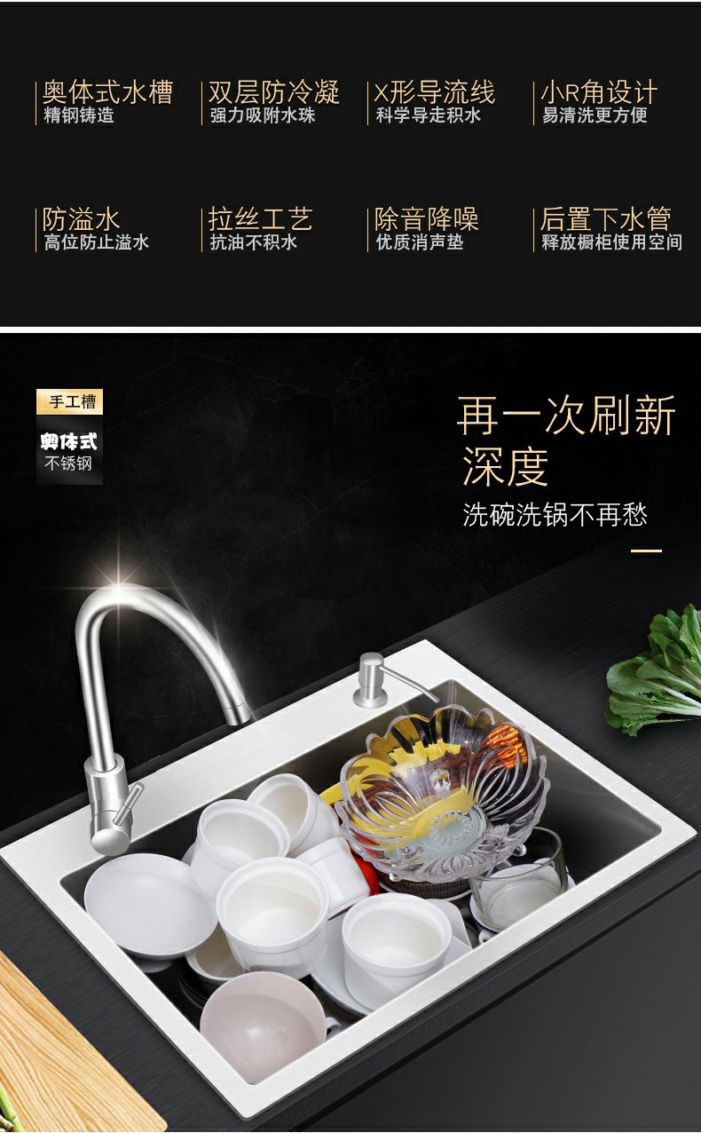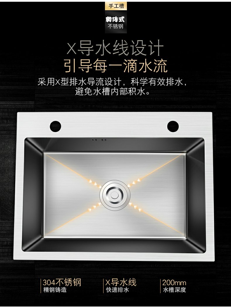 厨房水槽大单槽加厚304不锈钢洗碗池洗菜盆家用手工台下盆洗手盆