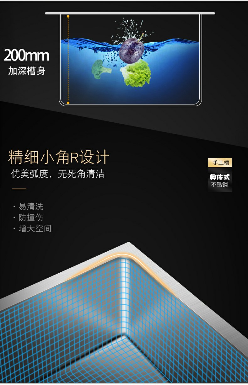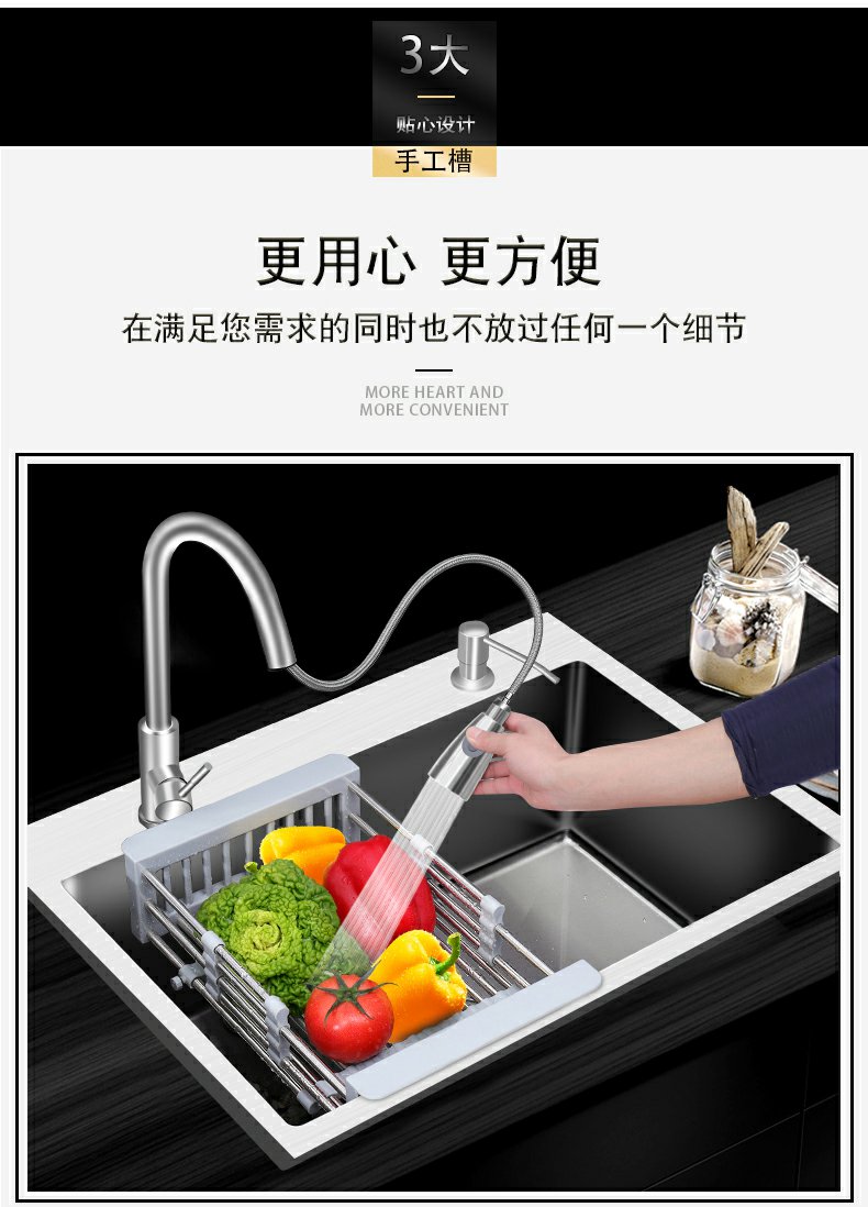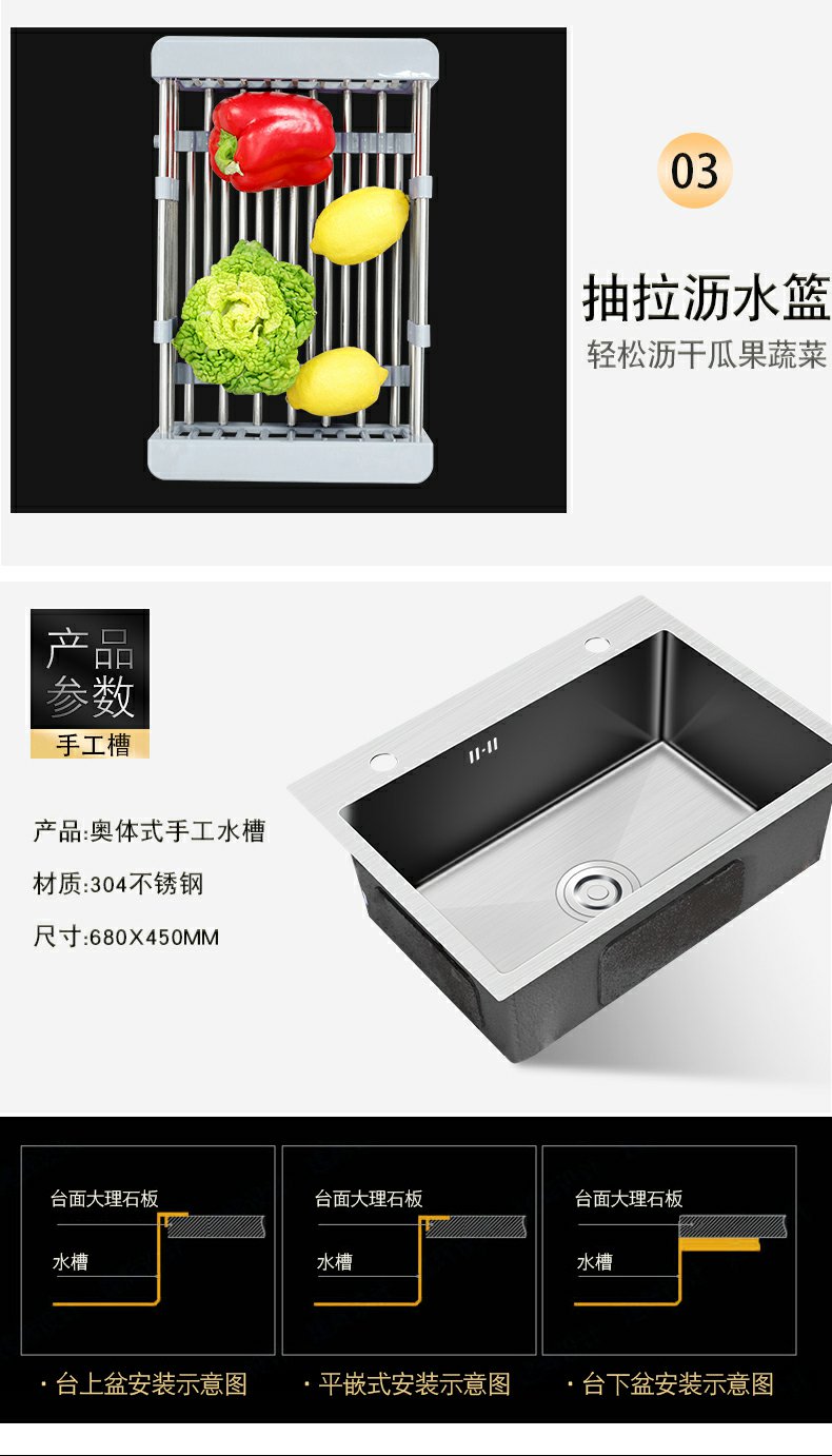 厨房水槽大单槽加厚304不锈钢洗碗池洗菜盆家用手工台下盆洗手盆