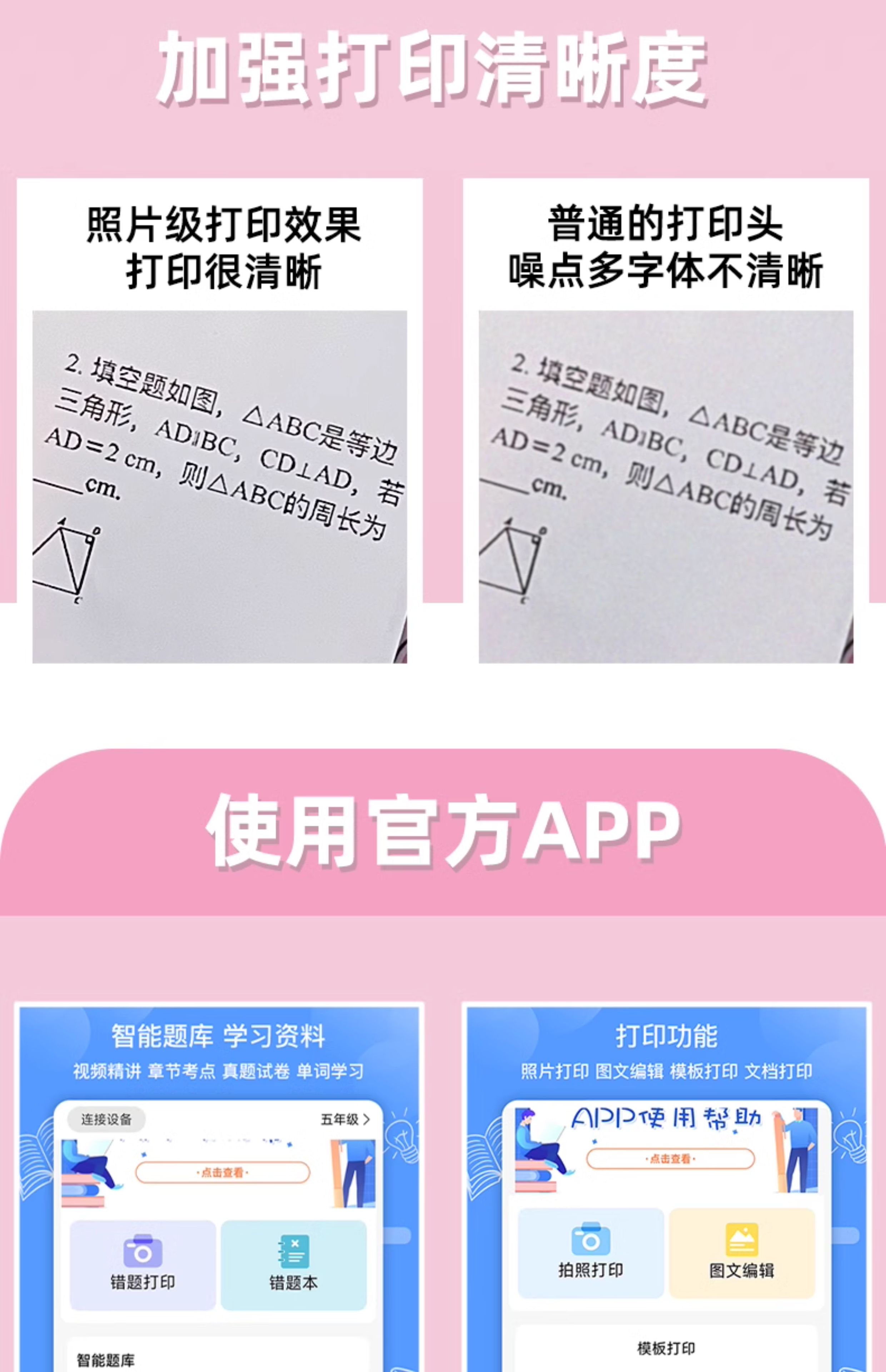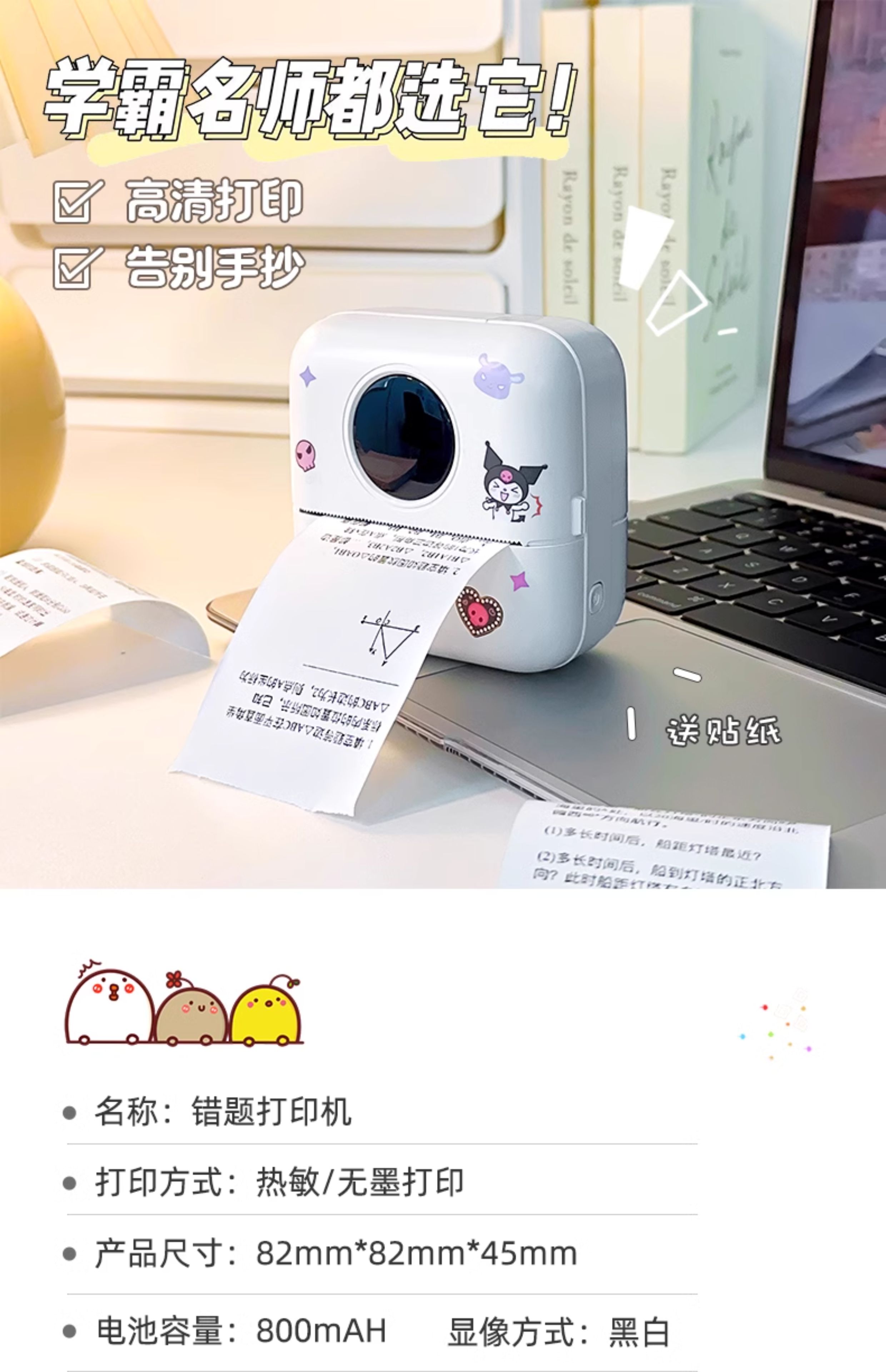学生便携式错题打印机初高中小学生作业错题整理免抄题学习辅导神器口袋迷你小型无线家用高清无墨手机打印机