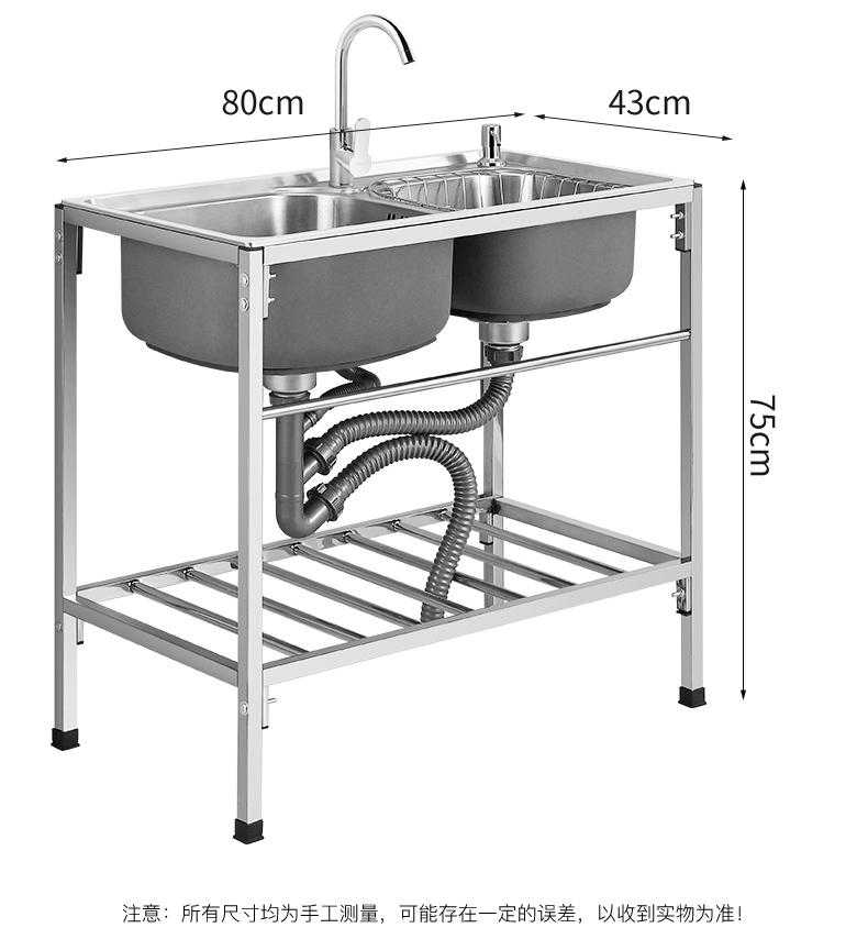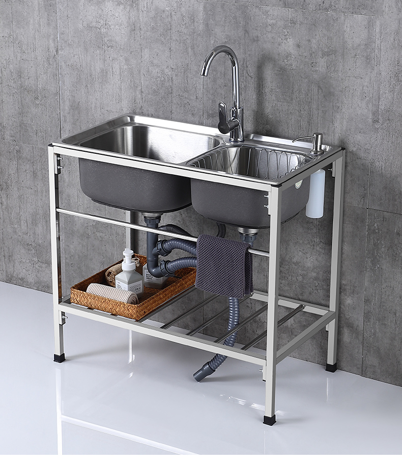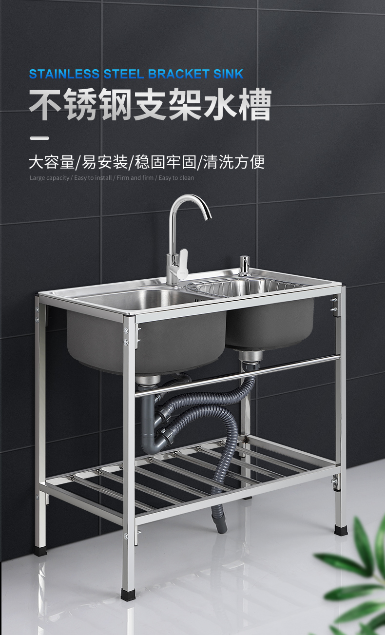 厨房洗菜盆304不锈钢加厚水槽双槽家用洗手盆焊接支架洗碗池水池