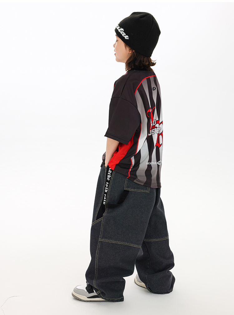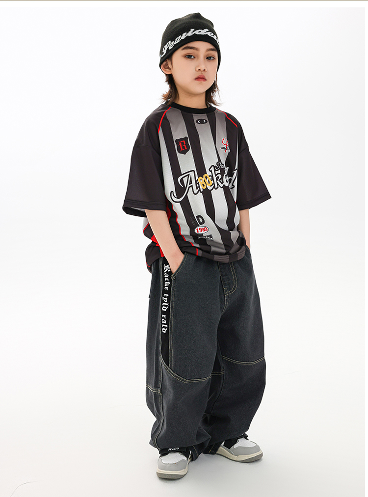 RACKETYLD儿童街舞服装男童嘻哈童装炸街酷帅牛仔裤女童短袖套装