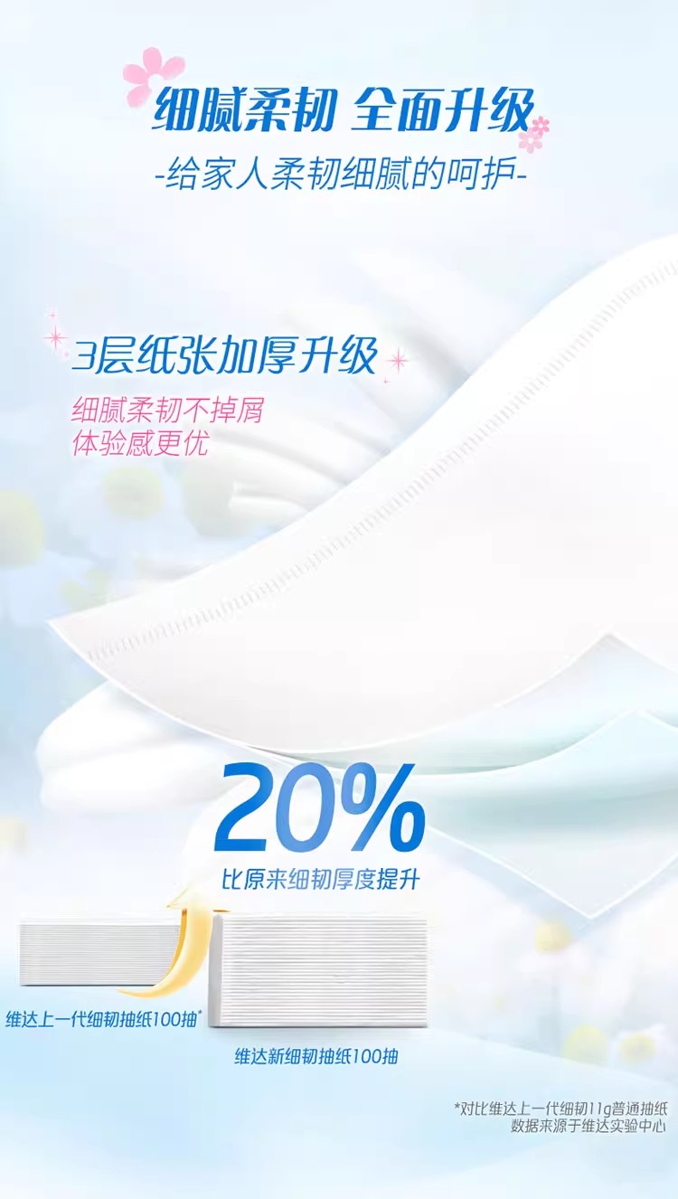 维达细韧抽纸巾3包100抽