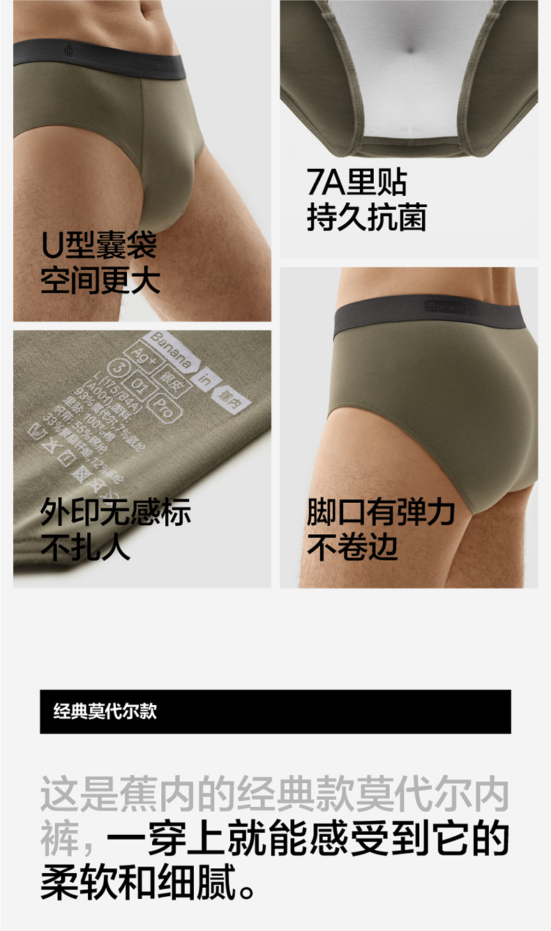 3件|蕉内银皮301Pro男士莫代尔三角内裤大码透气青少年纯棉裆短裤