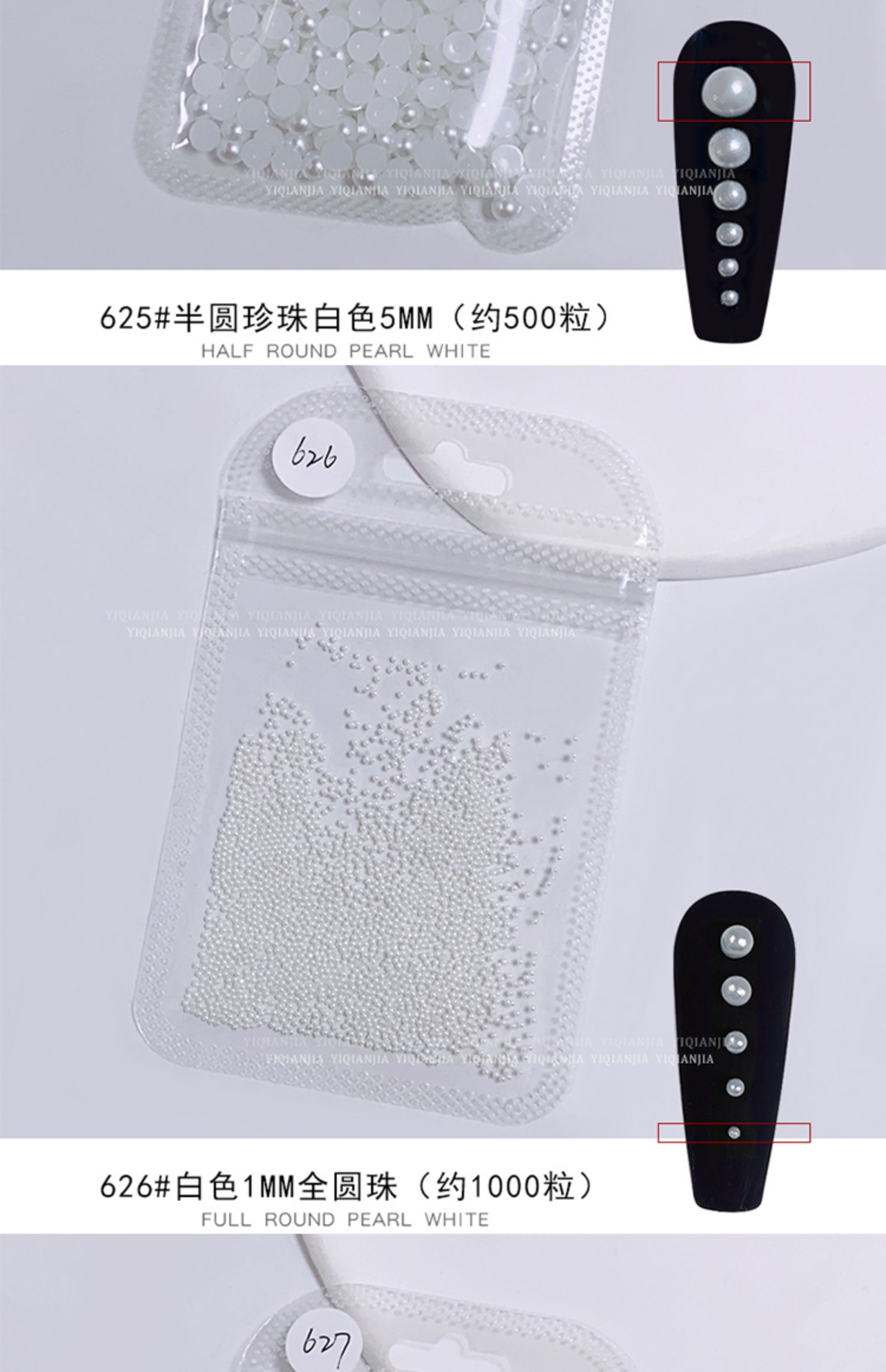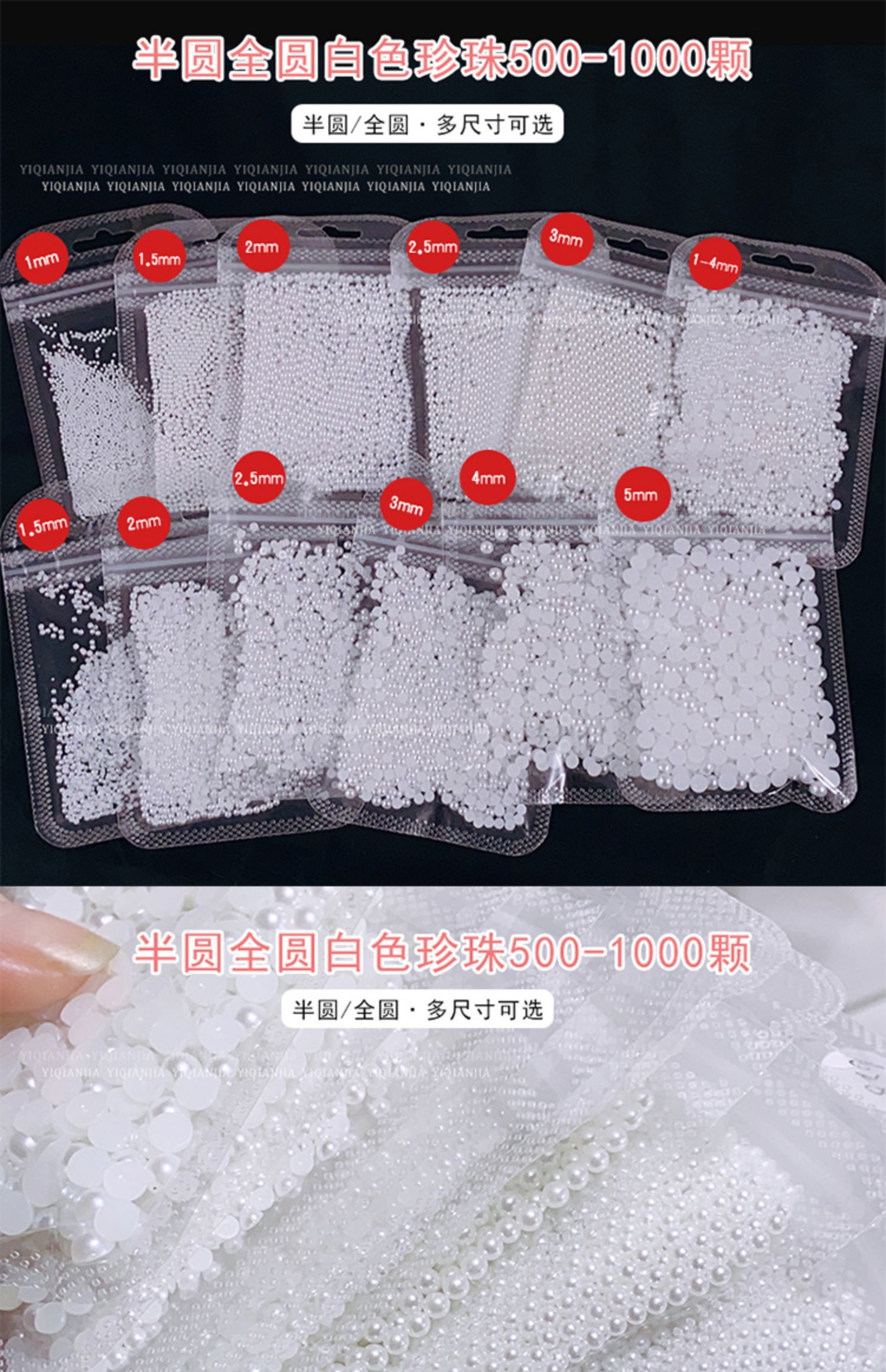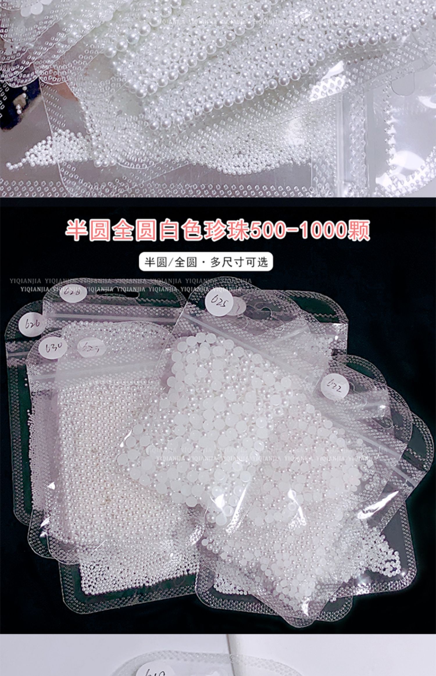 美甲店用大包装纯白色半圆珍珠整圆全圆不掉皮高亮指甲装饰品无孔