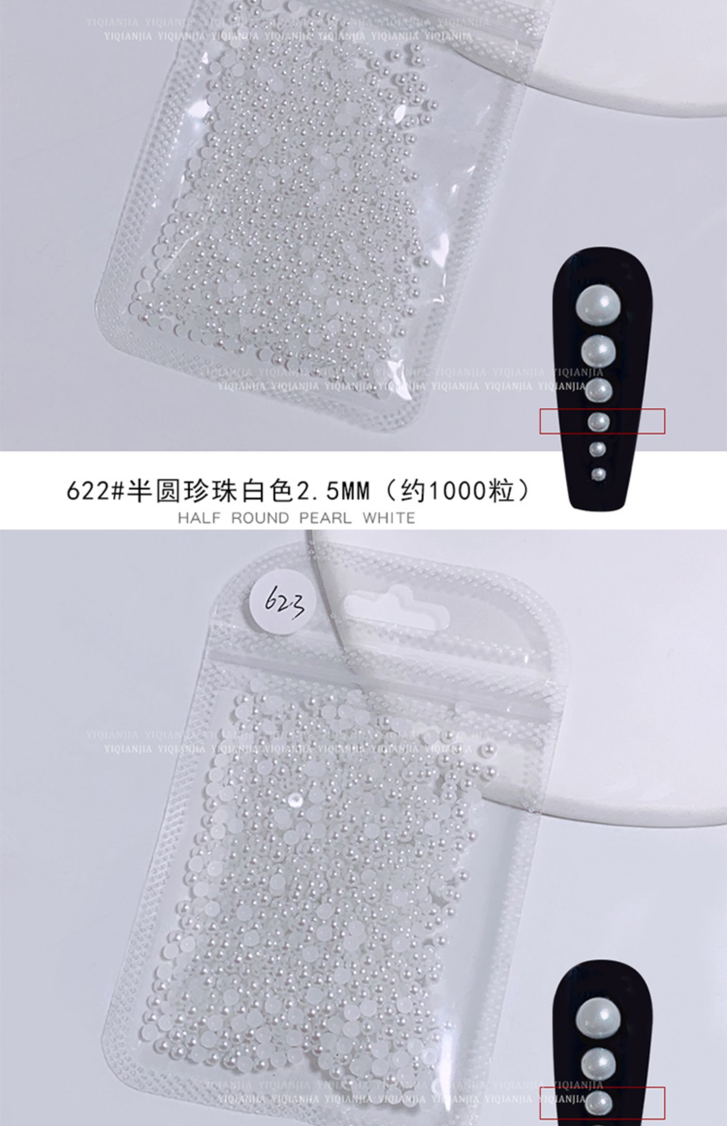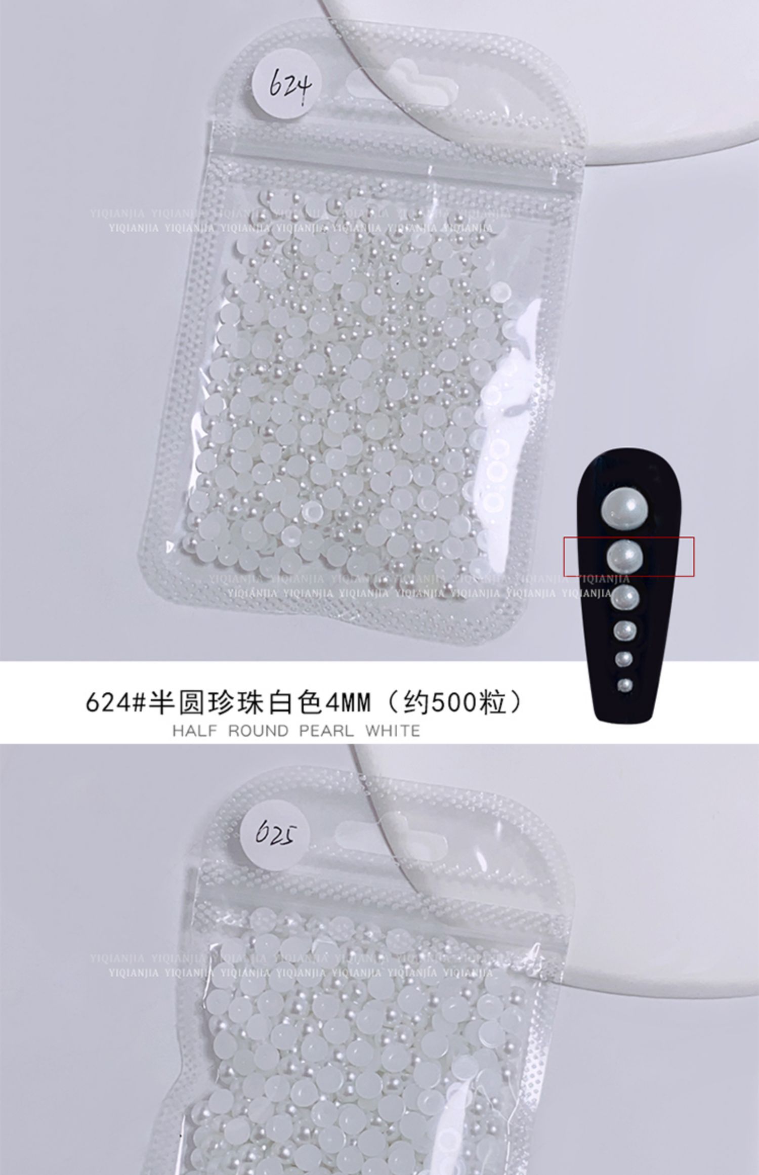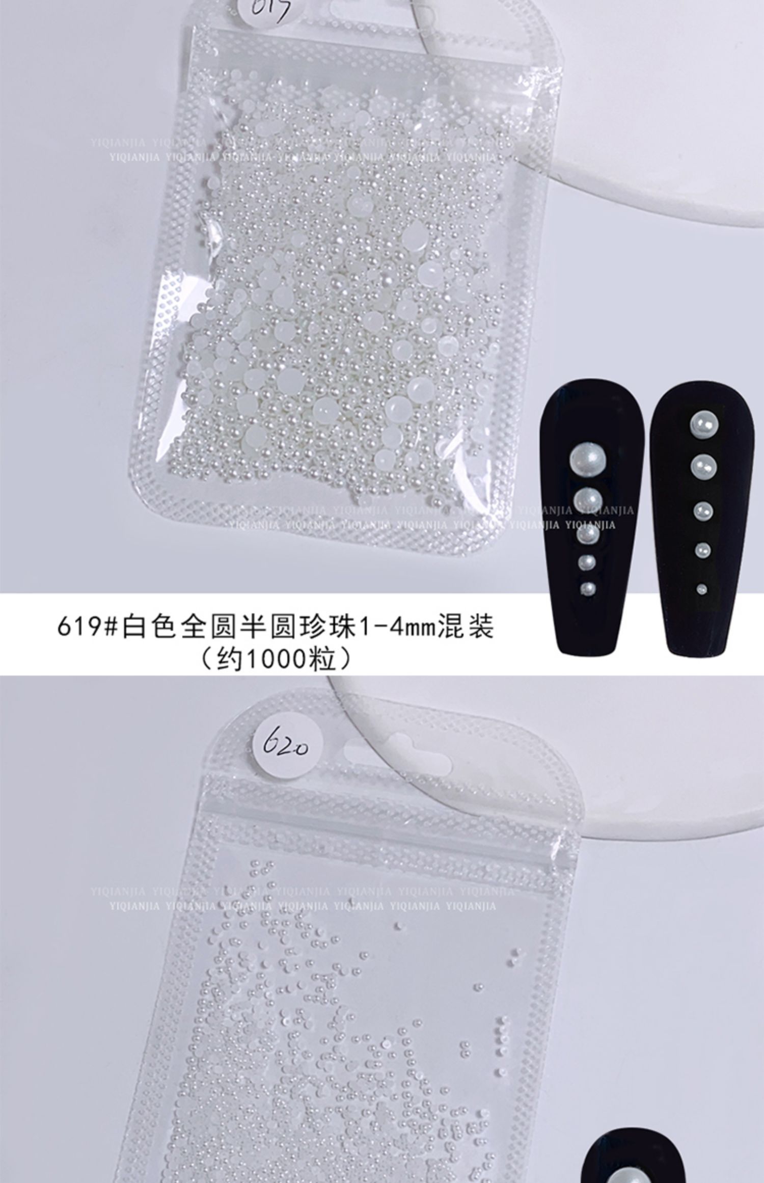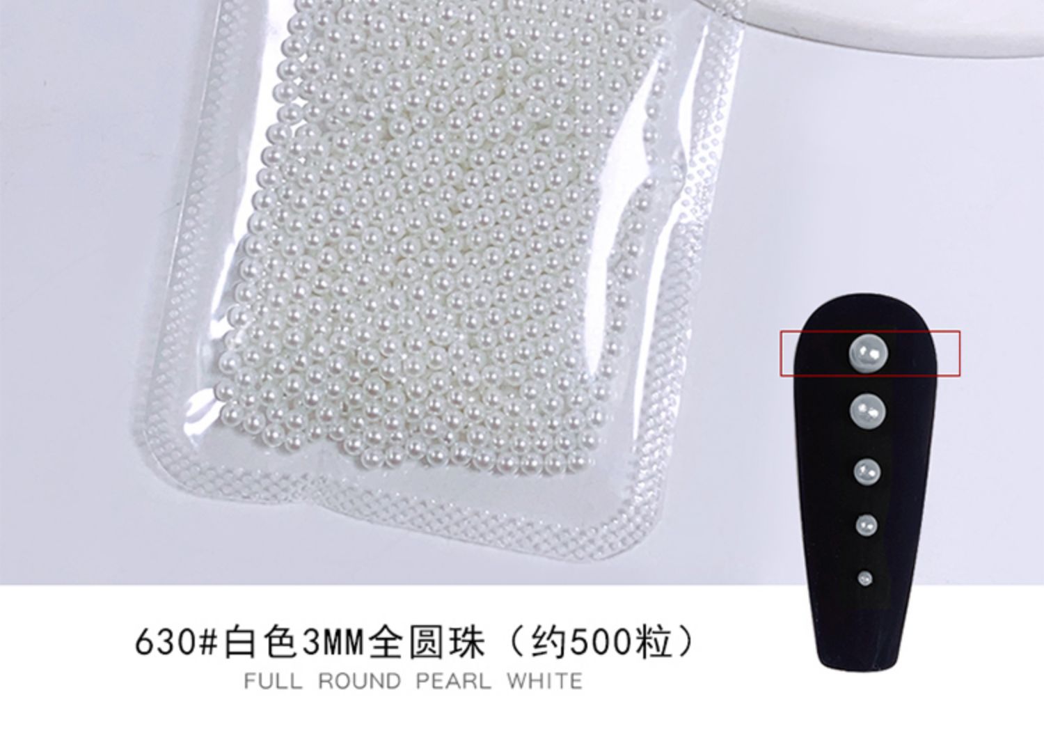 美甲店用大包装纯白色半圆珍珠整圆全圆不掉皮高亮指甲装饰品无孔