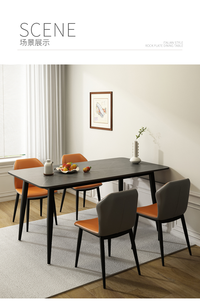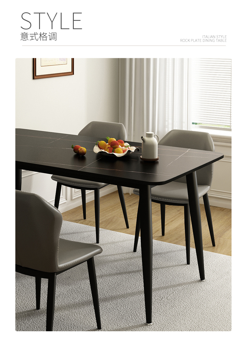 岩板餐桌家用小户型现代简约轻奢吃饭桌子长方形大理石餐桌椅组合