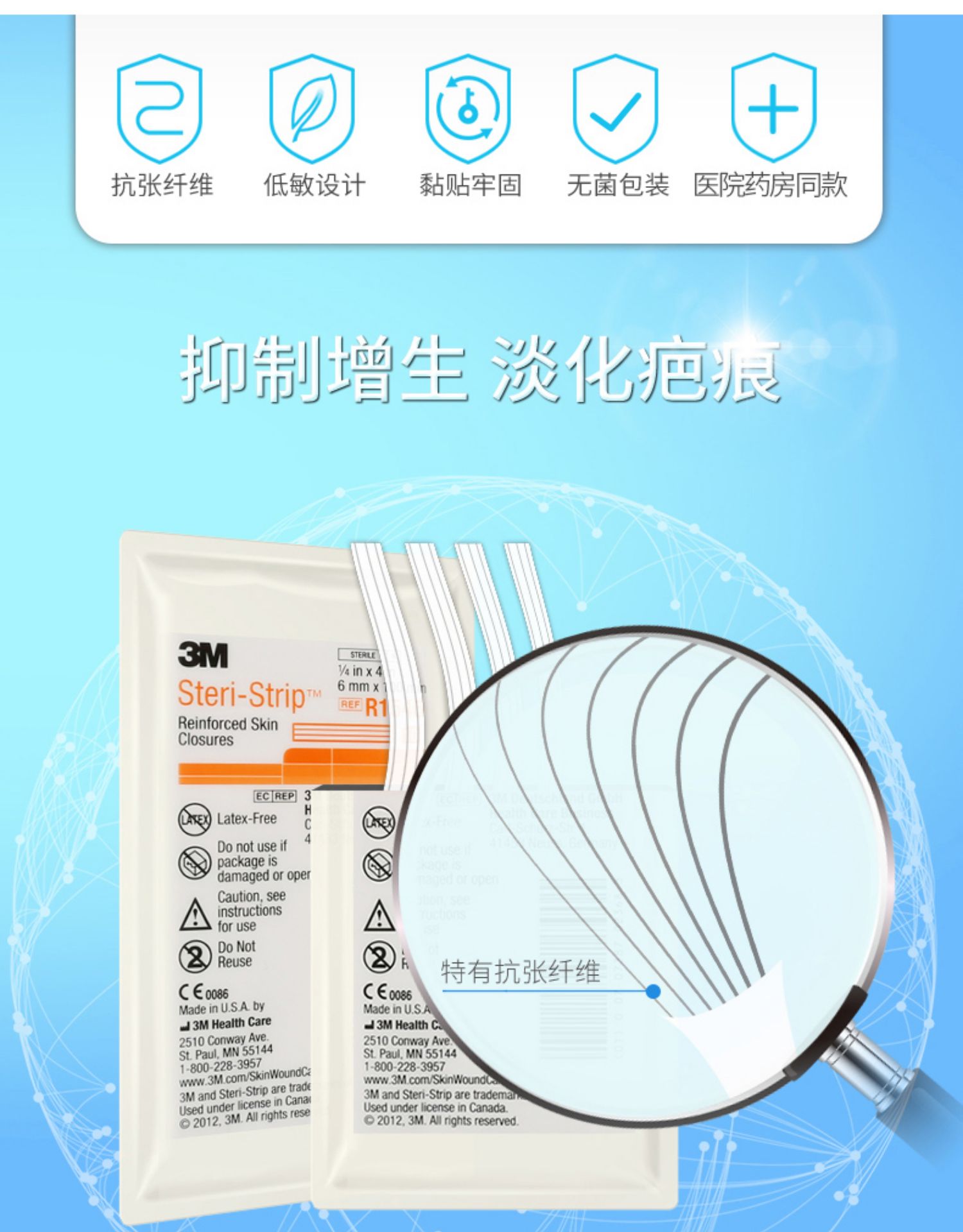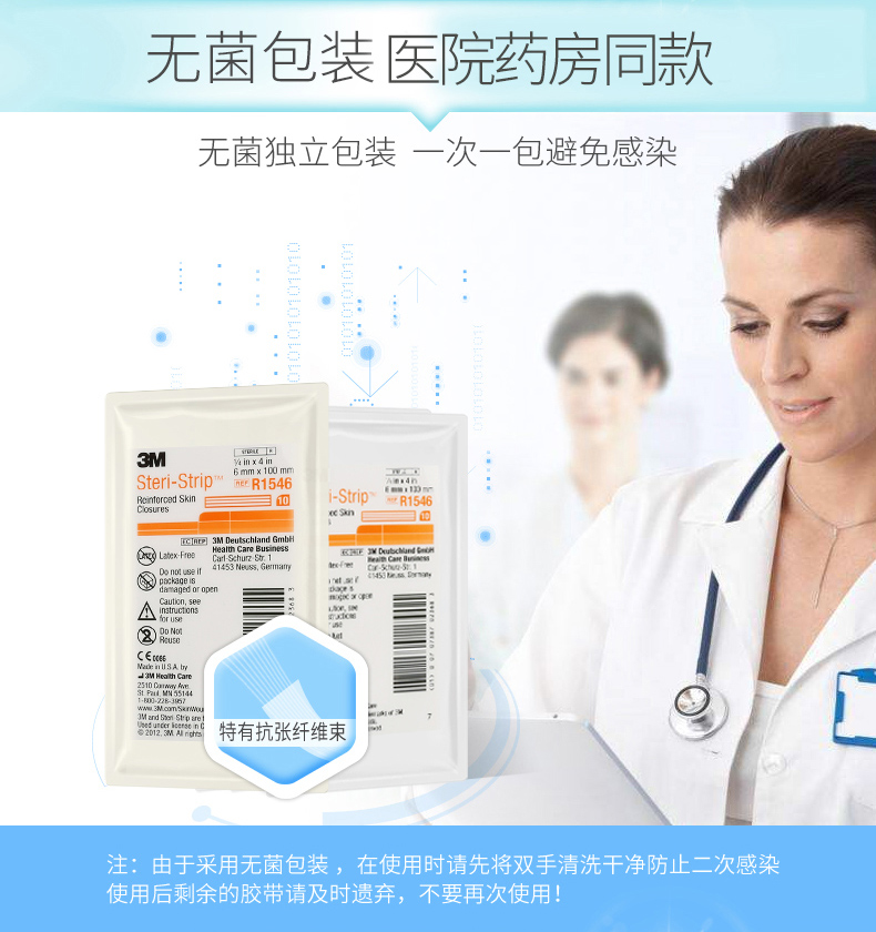 3M减张贴美国 免缝合儿童疤痕贴术后胶带伤口胶布防增生九院R1546