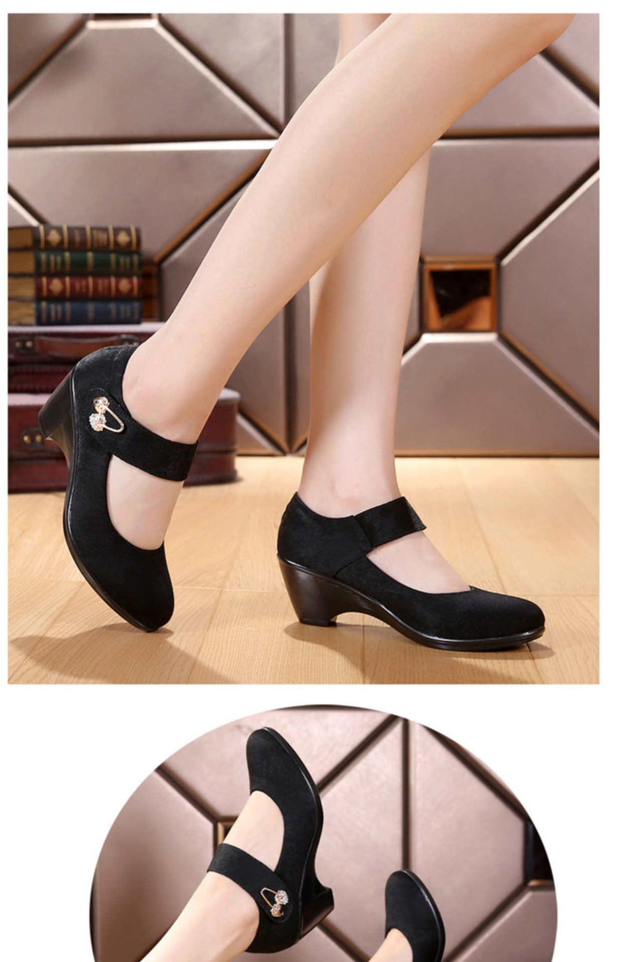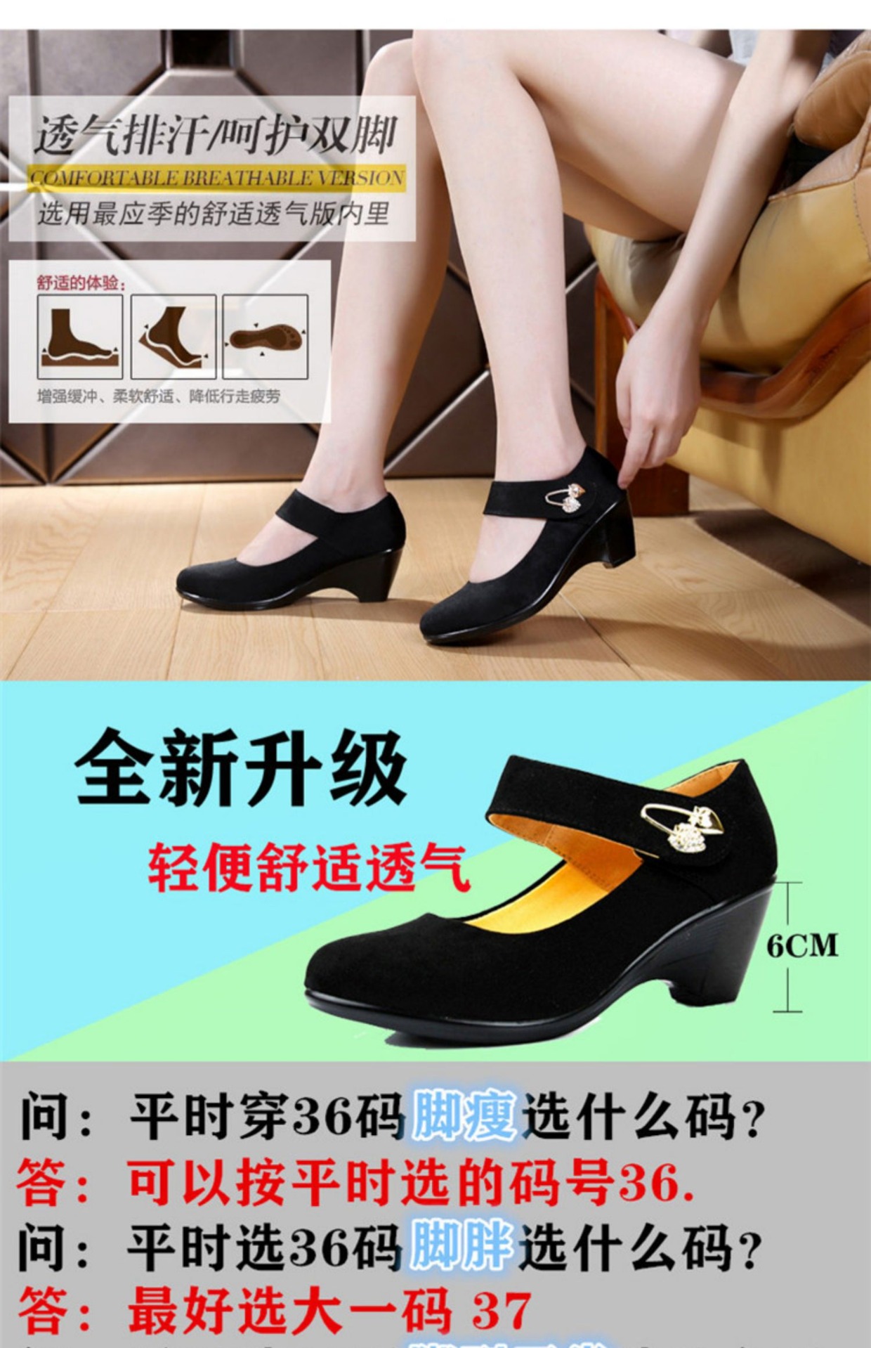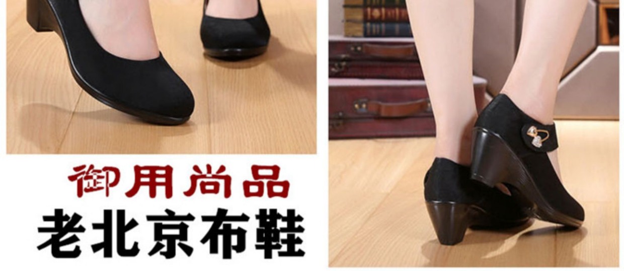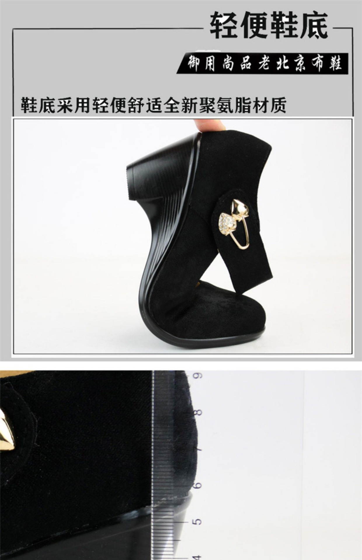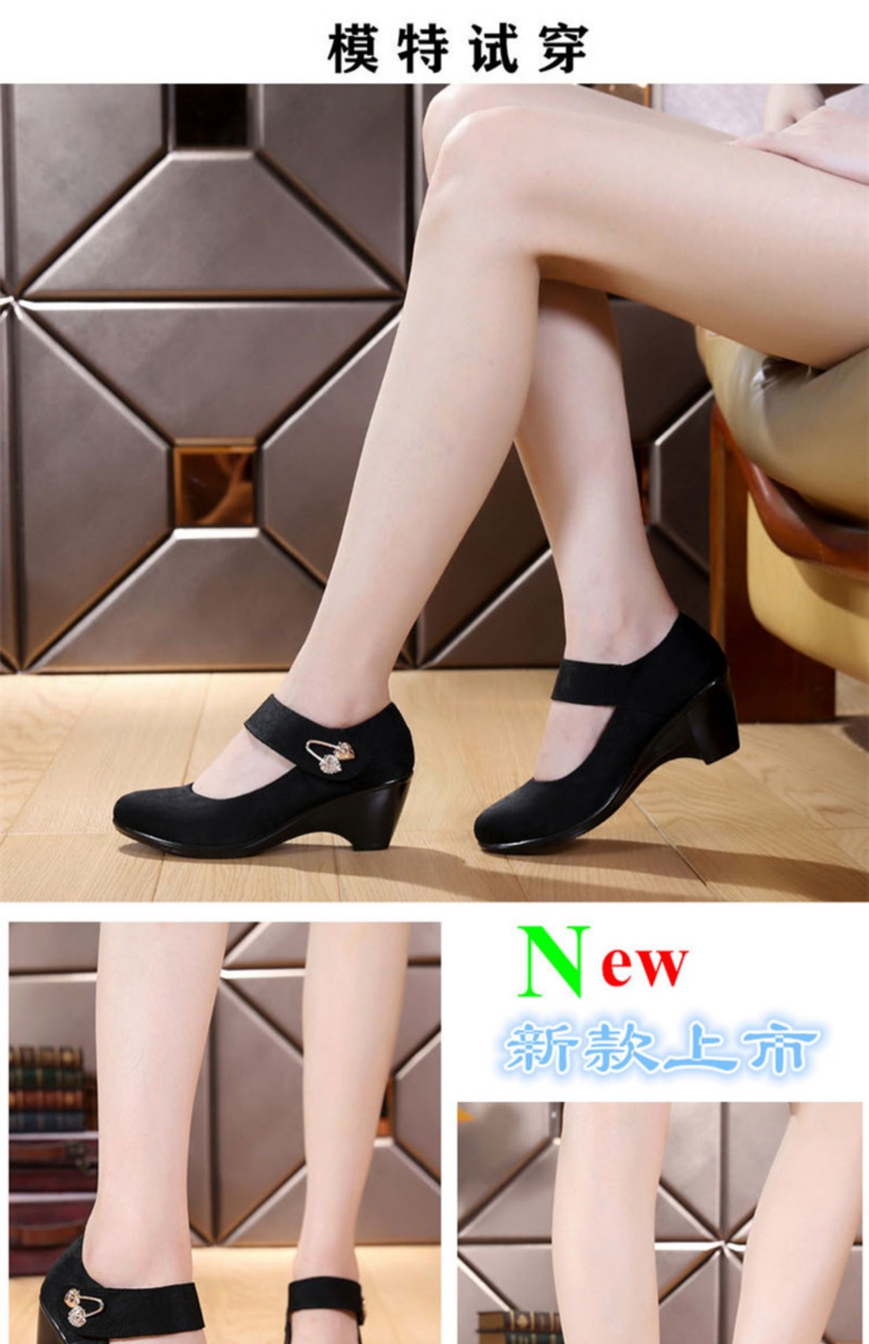 2025老北京布鞋新秋款中高跟坡跟女搭扣女鞋工装鞋职业舞蹈黑单鞋