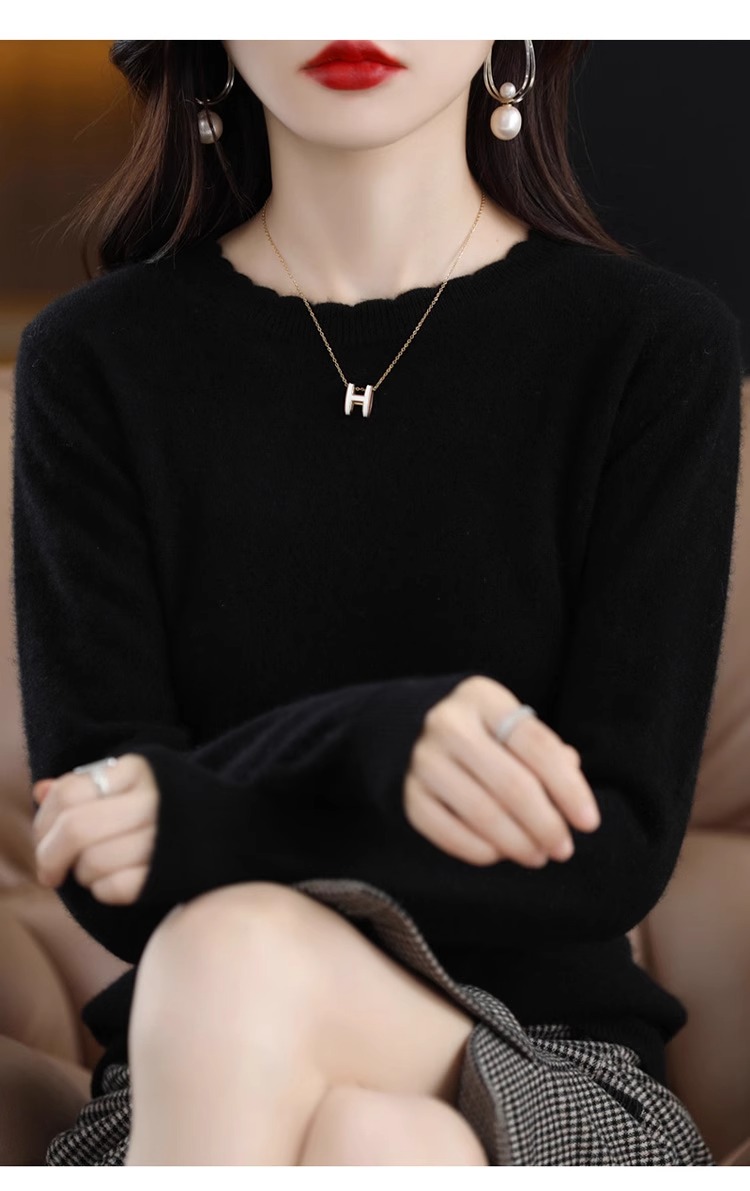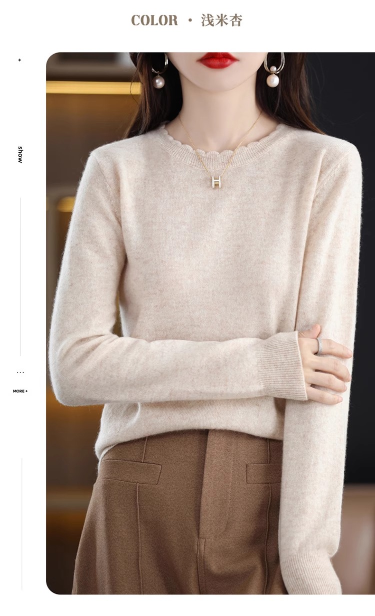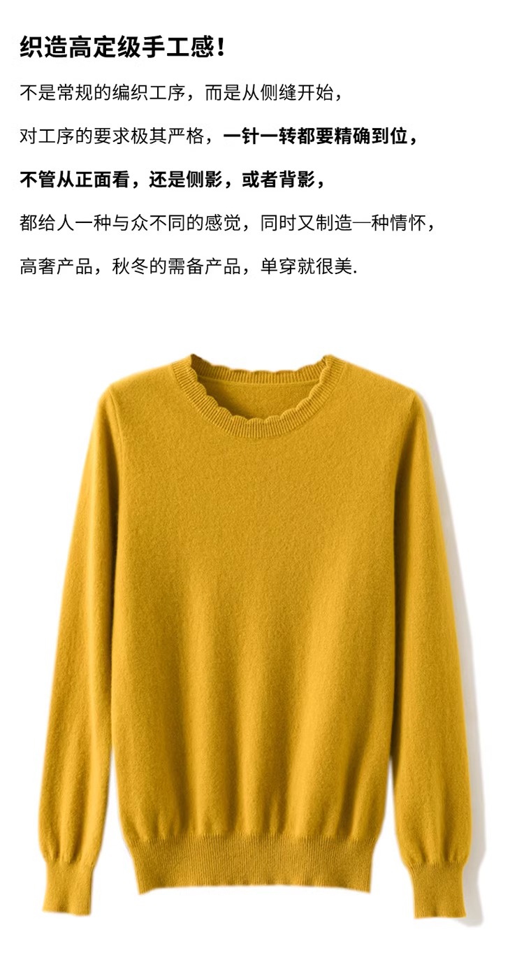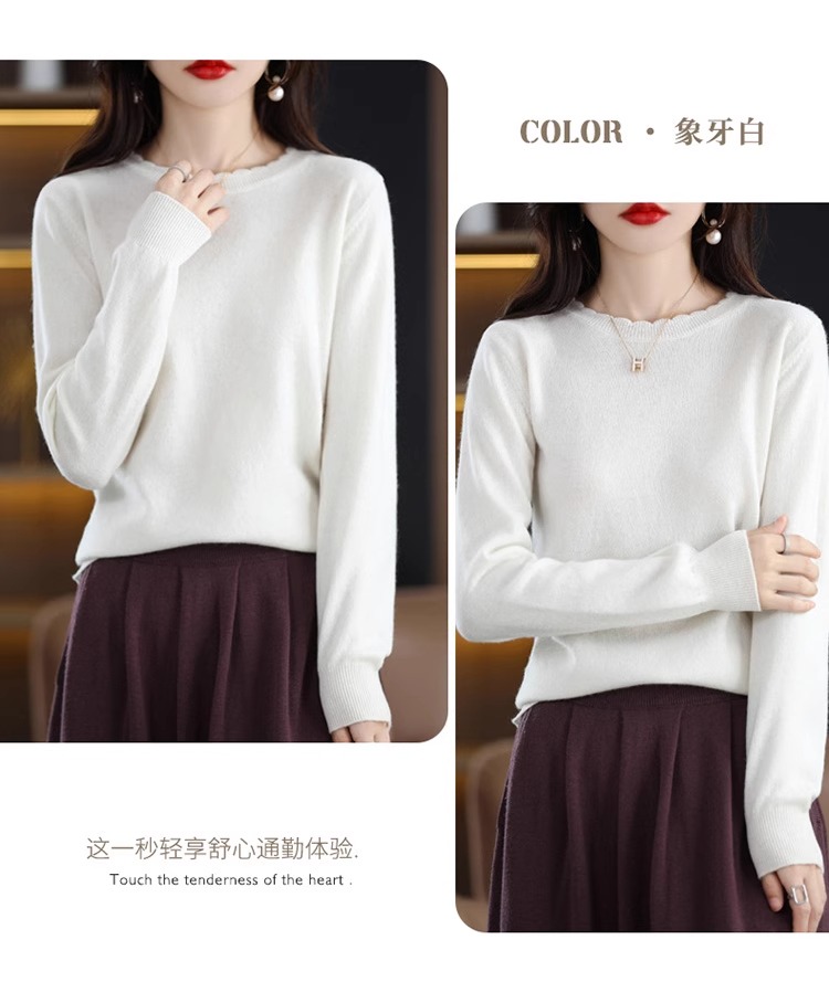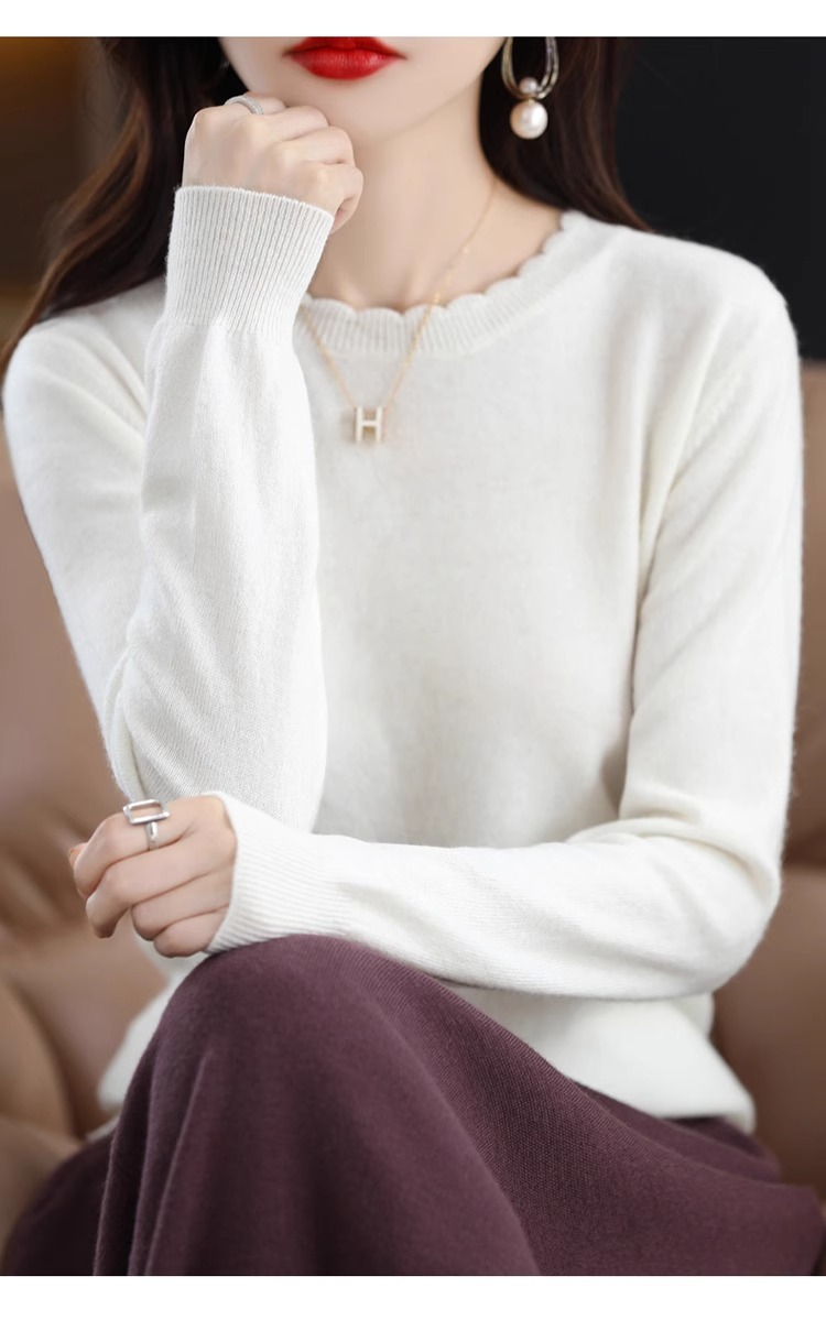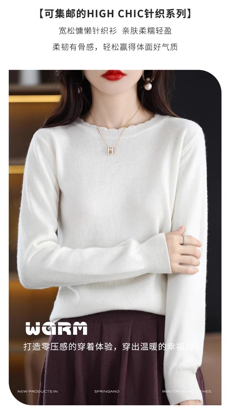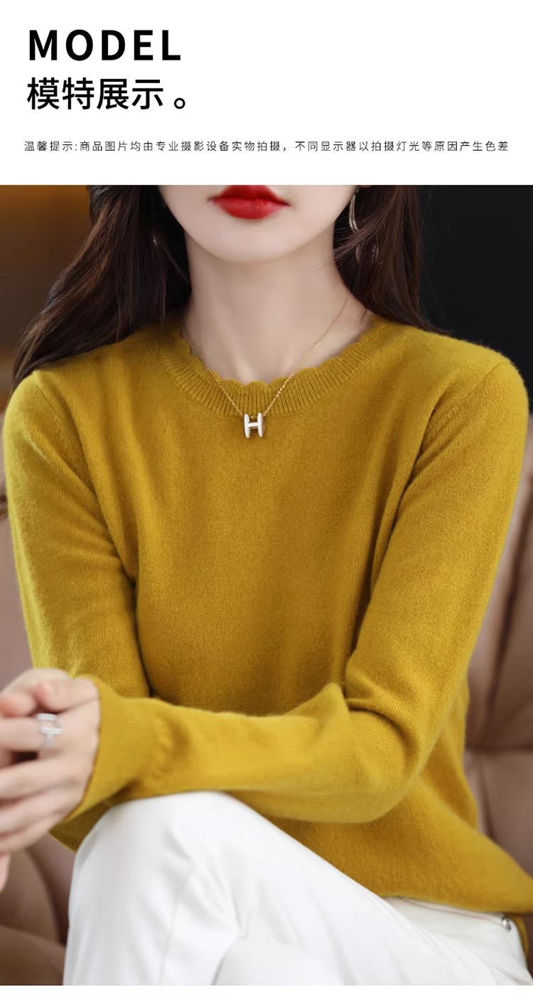 软糯休闲花边圆领打底衫女新款洋气2023年秋冬毛衣长袖针织衫宽松