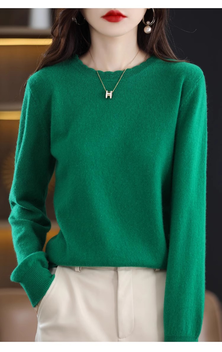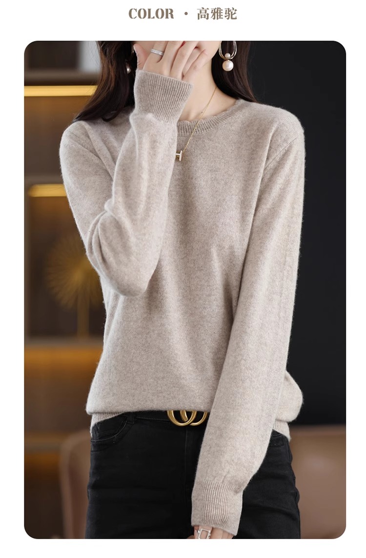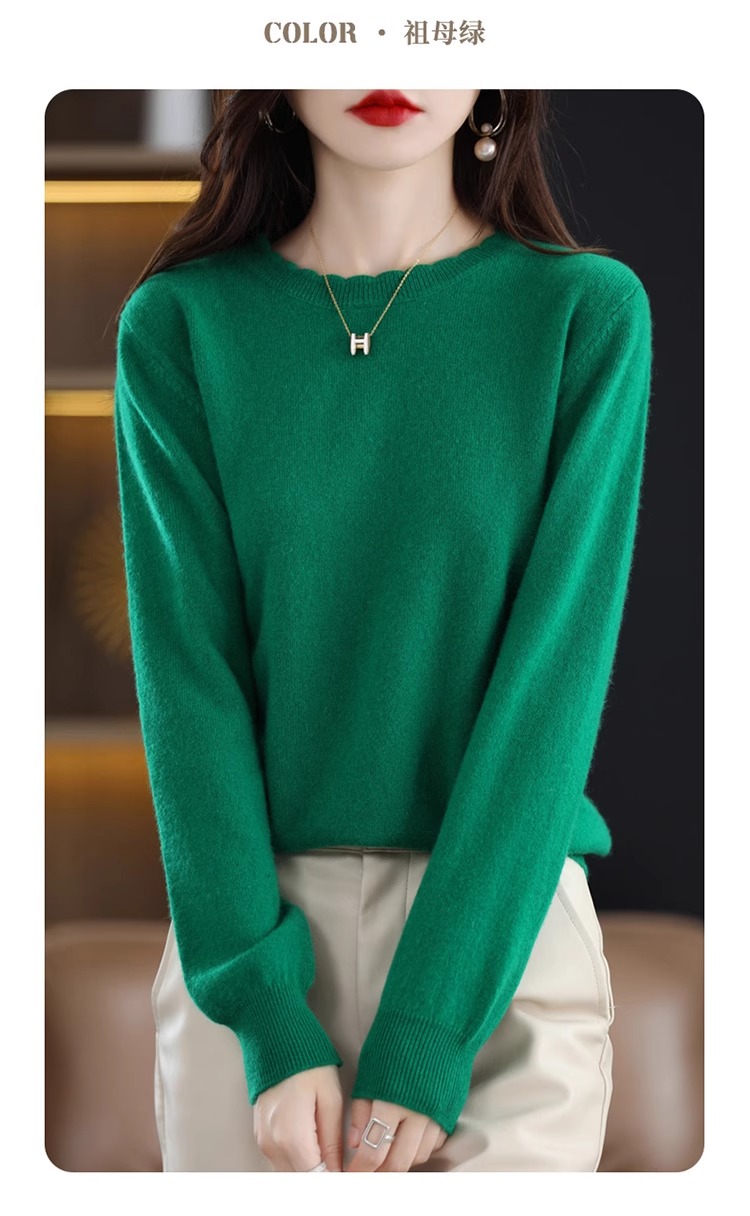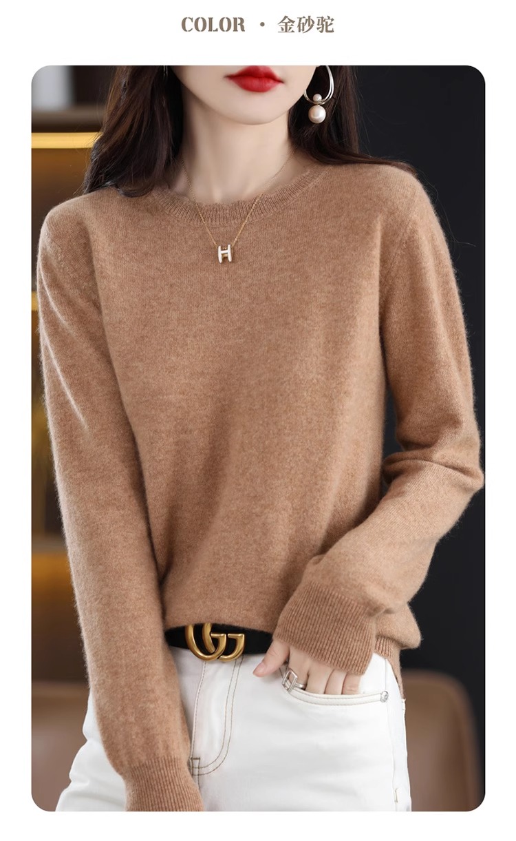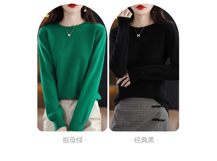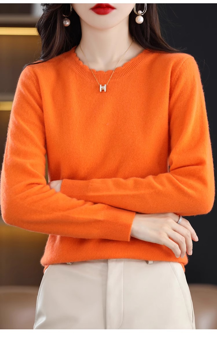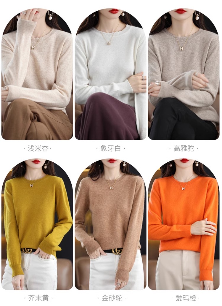 软糯休闲花边圆领打底衫女新款洋气2023年秋冬毛衣长袖针织衫宽松