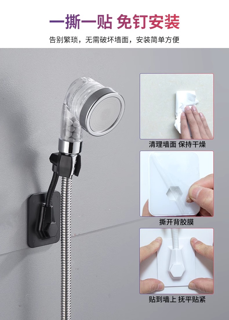 花洒支架免打孔固定神器淋浴喷头架子万向浴室挂座可调节墙座底座