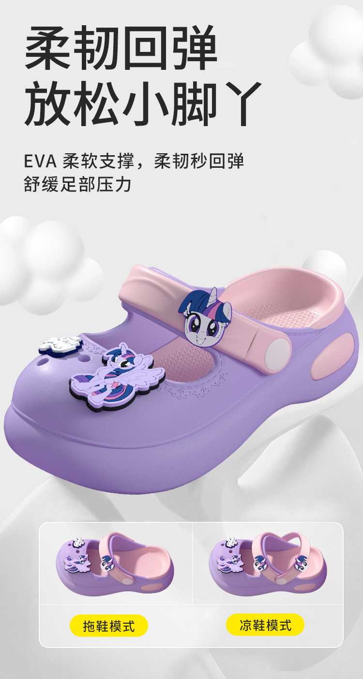 正版小马宝莉女款凉鞋包头洞洞鞋防滑踩屎感女孩子外穿儿童拖鞋夏