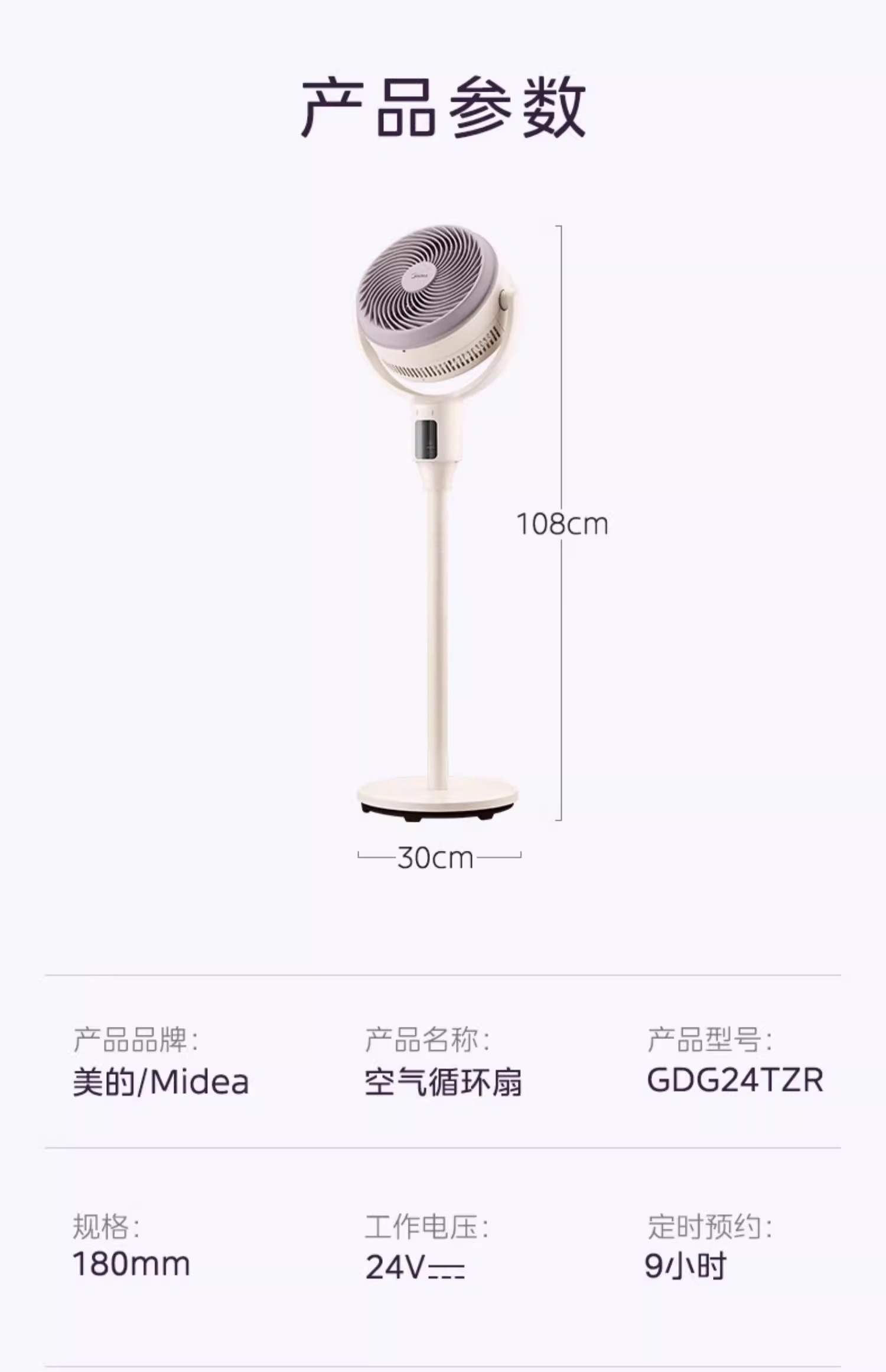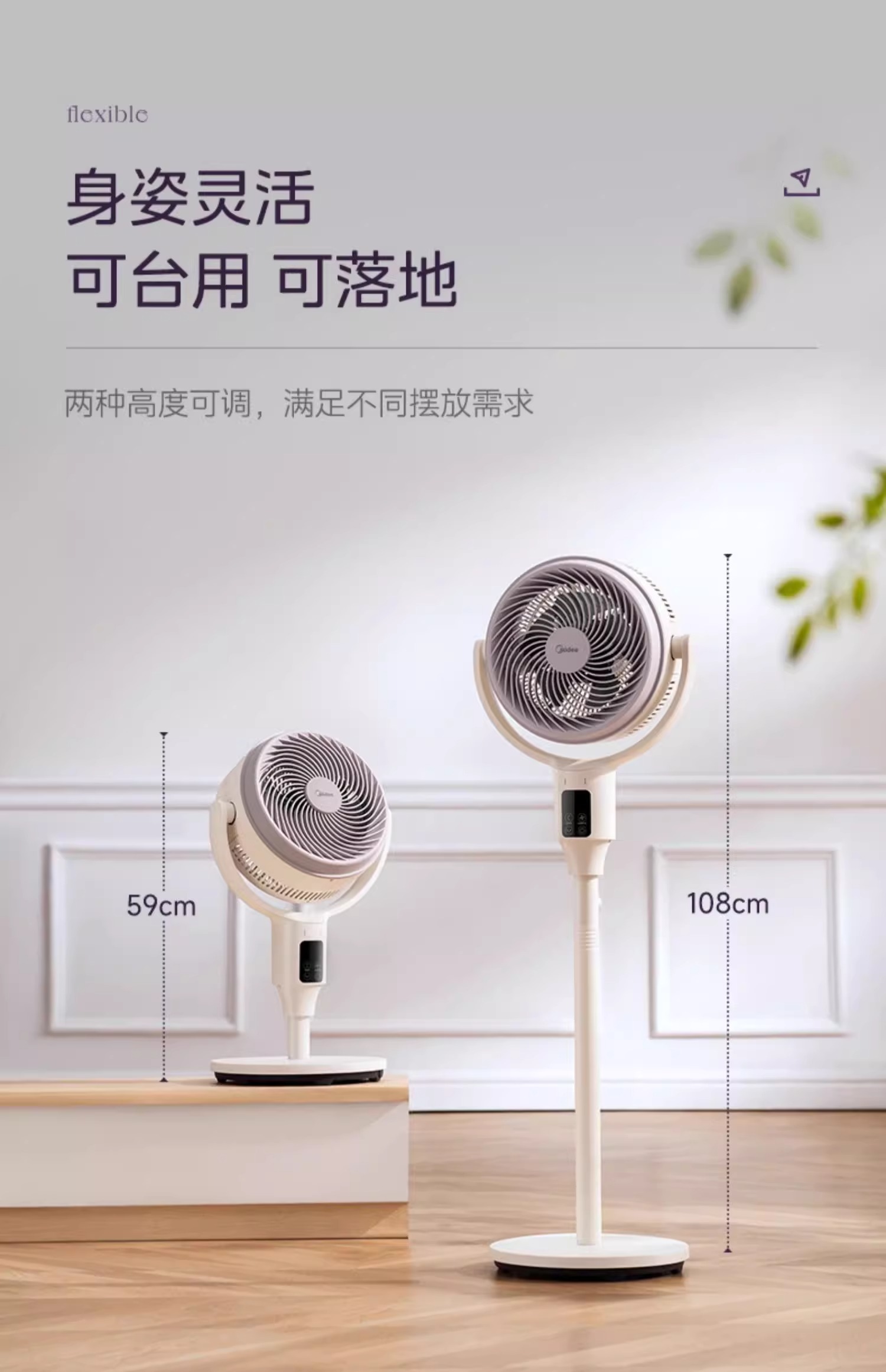 美的空气循环扇家用落地扇节能静音台地两用卧室电风扇