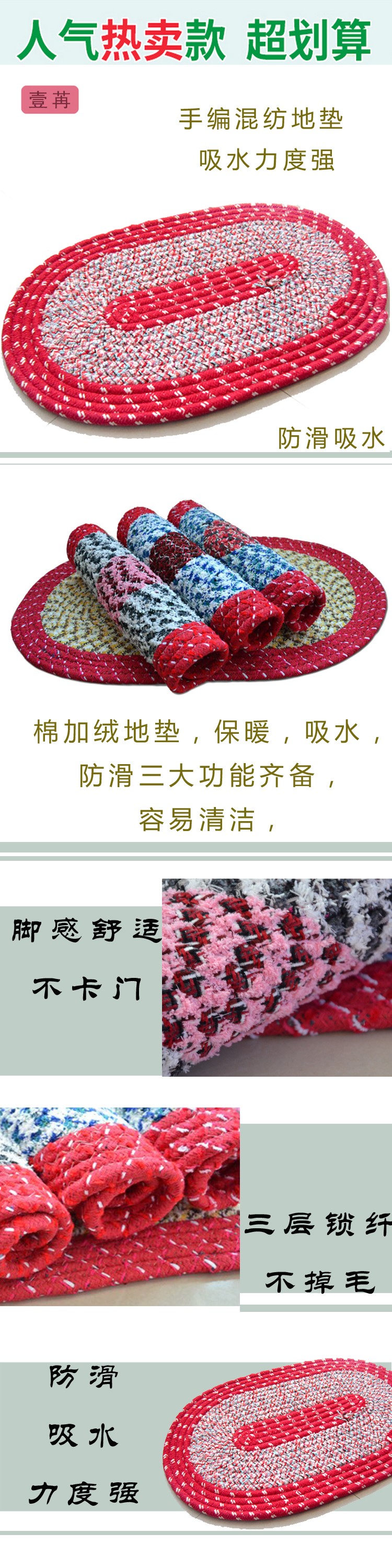 进门防滑脚垫卫生间吸水地垫浴室门垫厨房椭圆加厚混纺棉布地毯