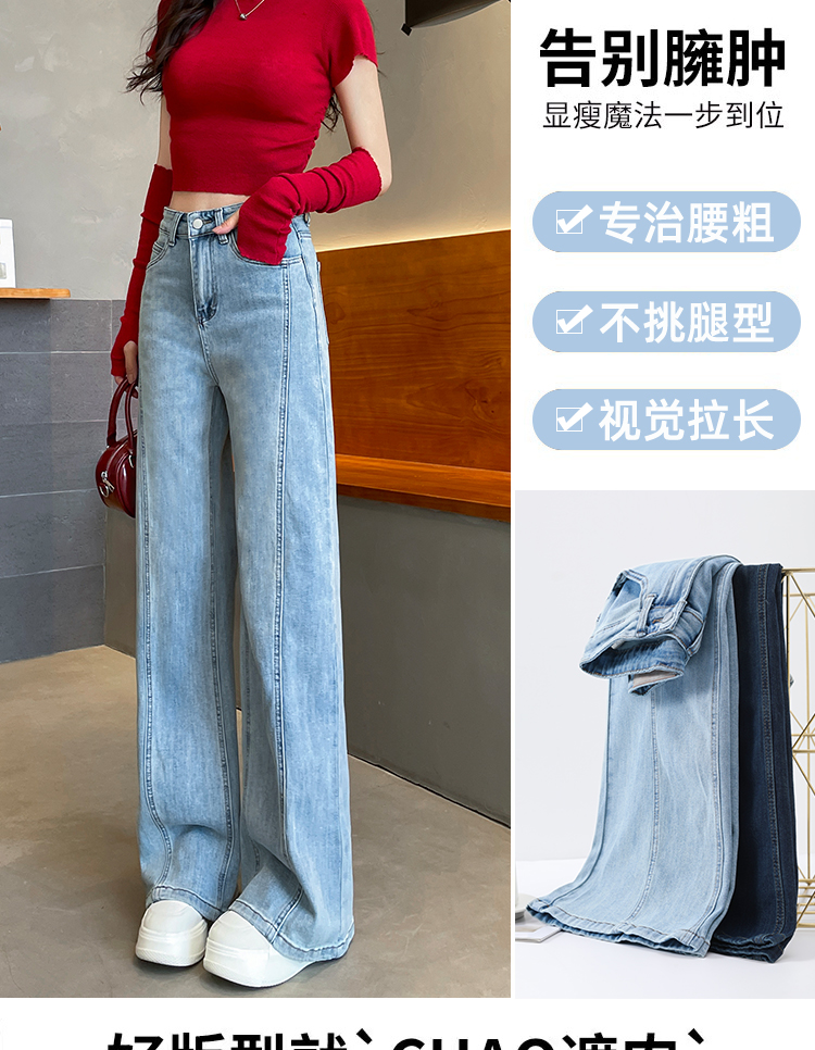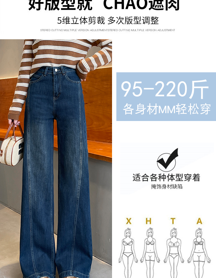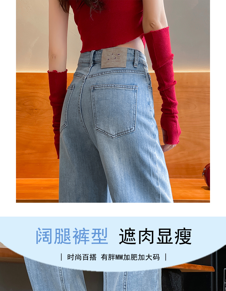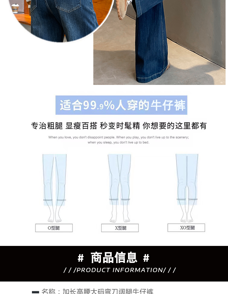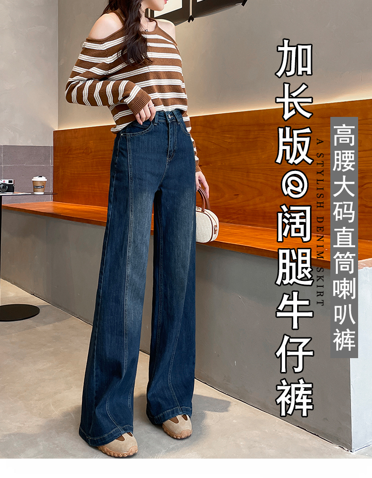 高个子加长弯刀阔腿牛仔裤女大码175超长高腰宽松显瘦微喇牛仔裤