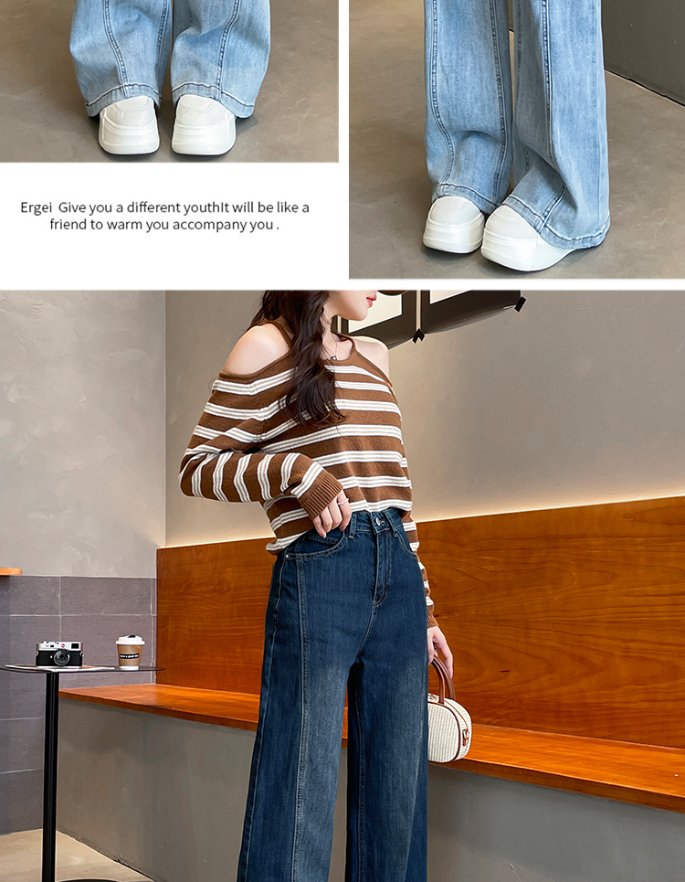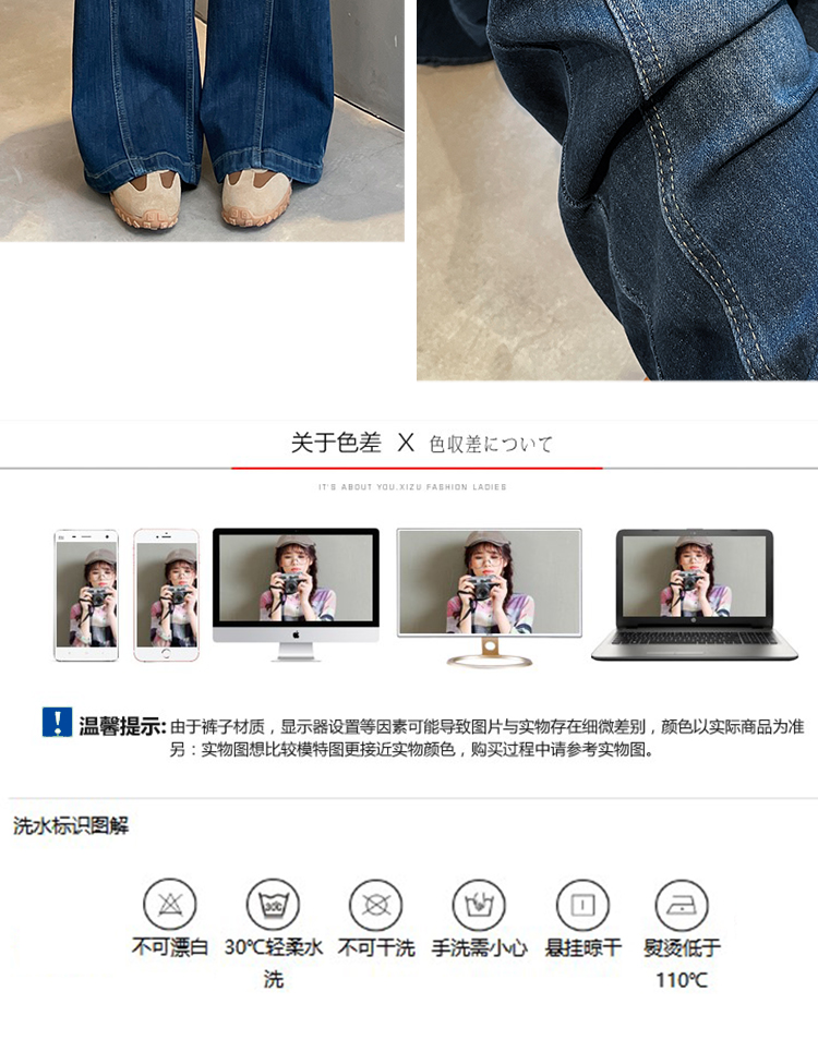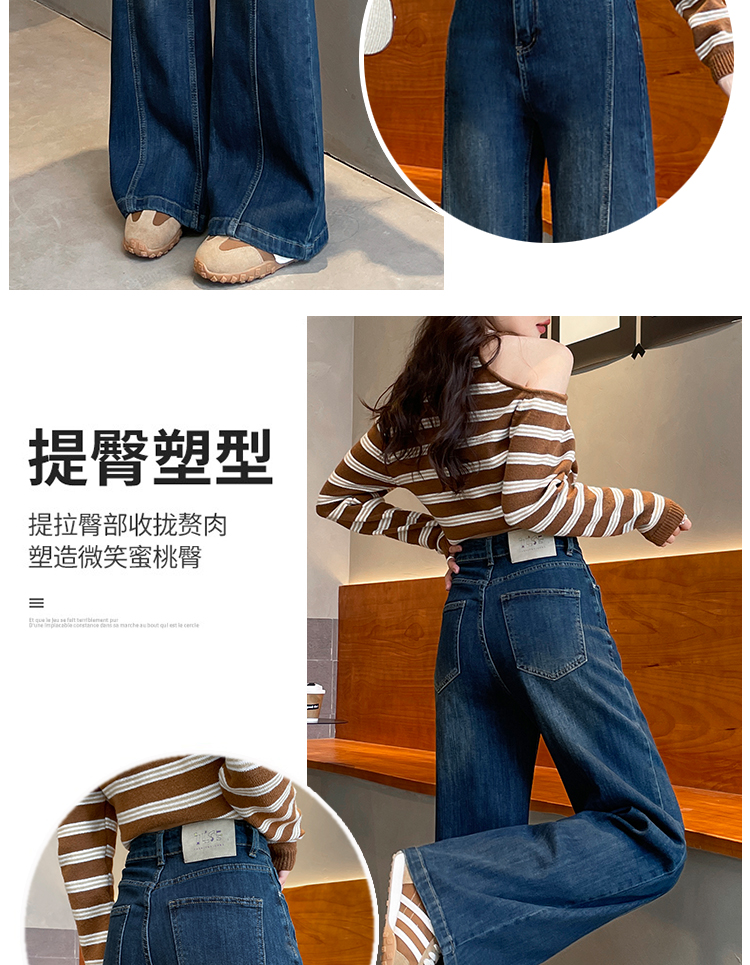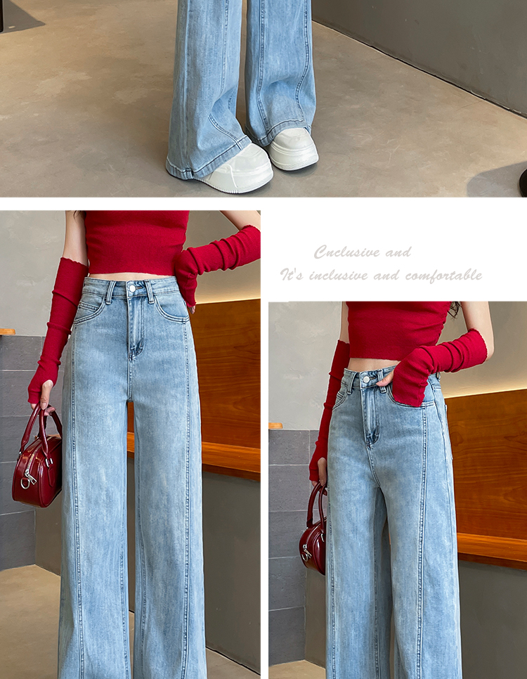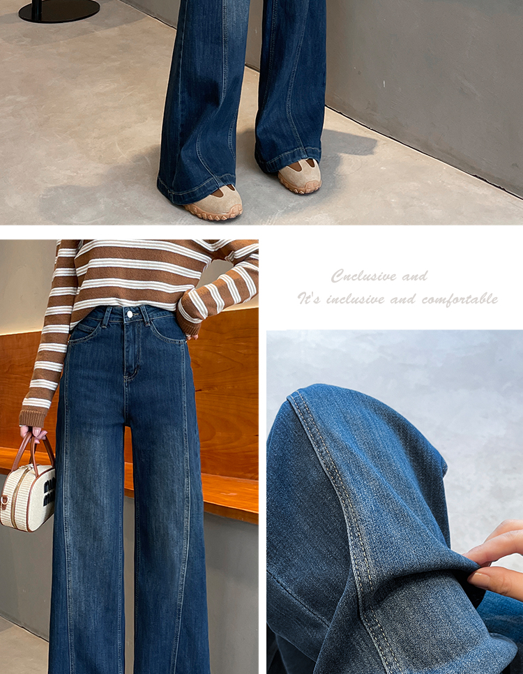高个子加长弯刀阔腿牛仔裤女大码175超长高腰宽松显瘦微喇牛仔裤