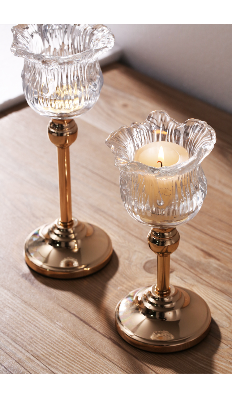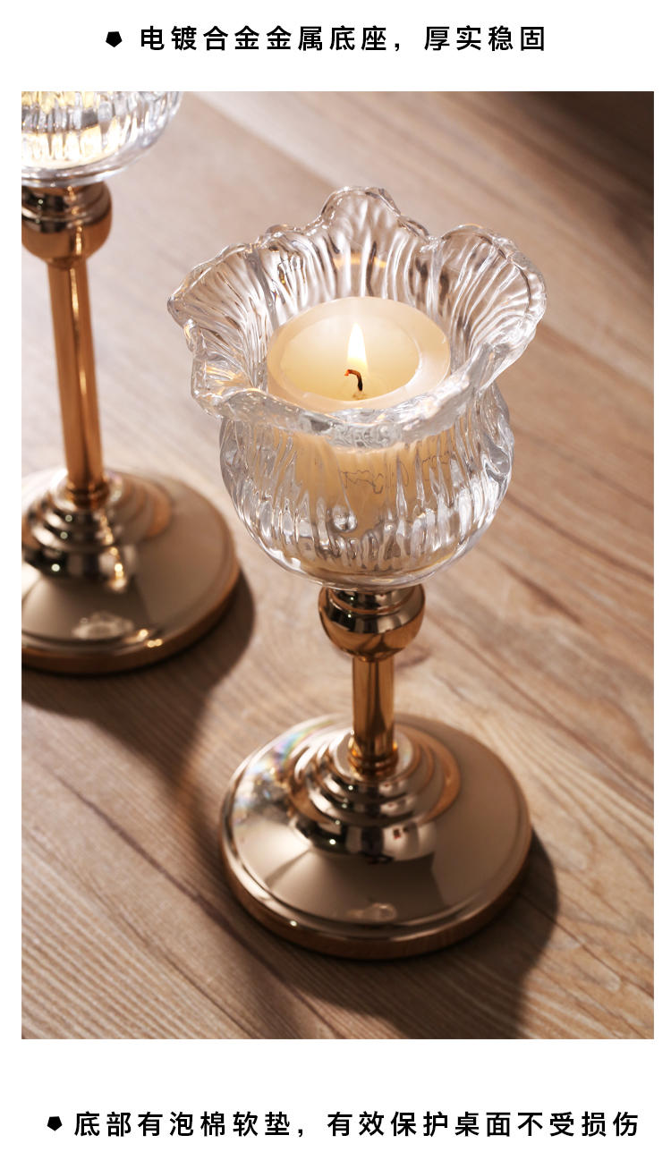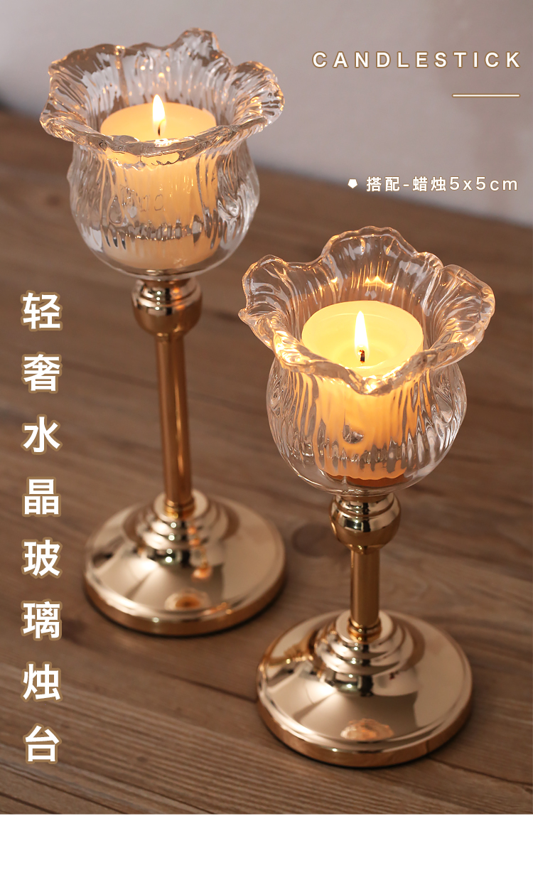 北欧轻奢金属水晶玻璃蜡烛台高脚欧式浪漫烛光晚餐桌装饰家居摆件