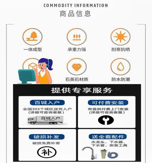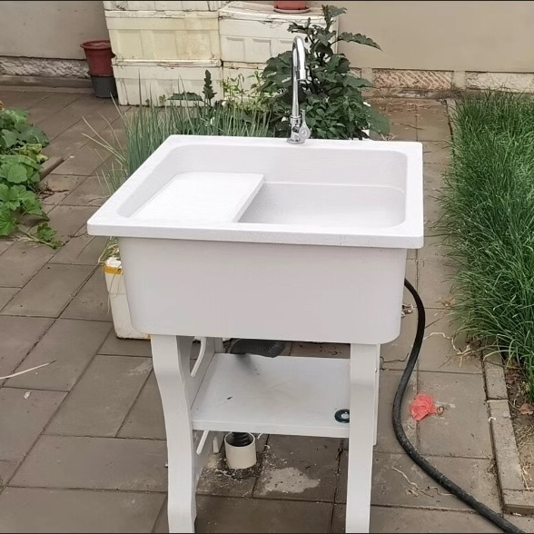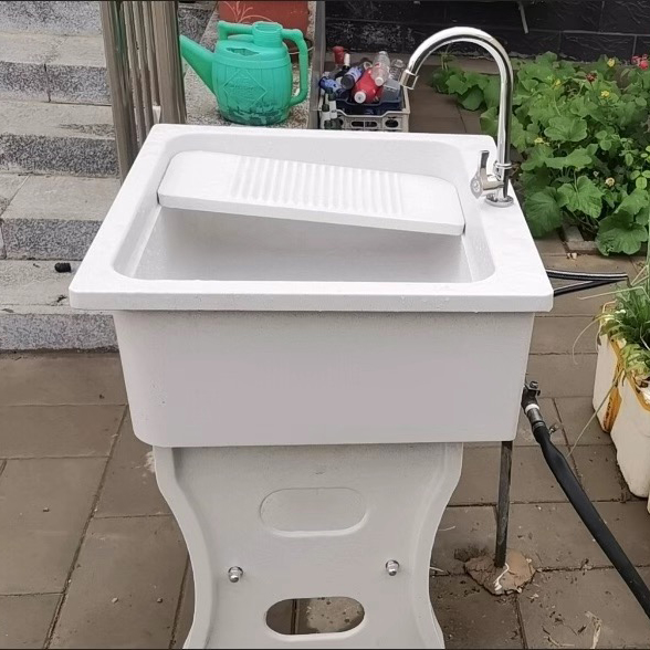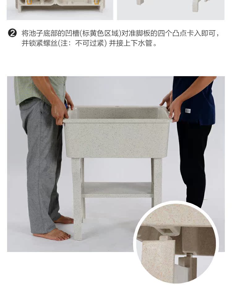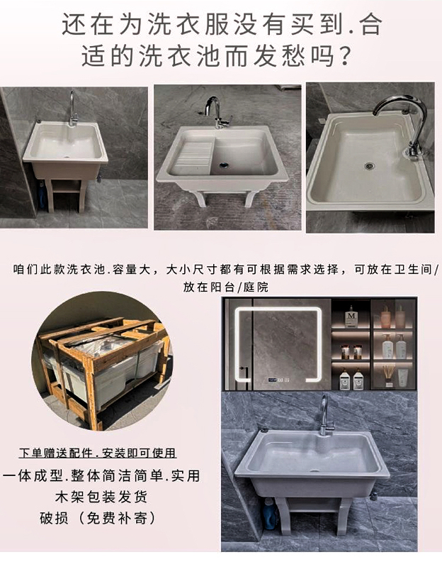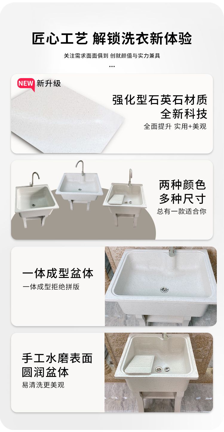 石英石洗脸盆带搓板家用免打孔一体阳台石头水槽卫生间落地浴室柜