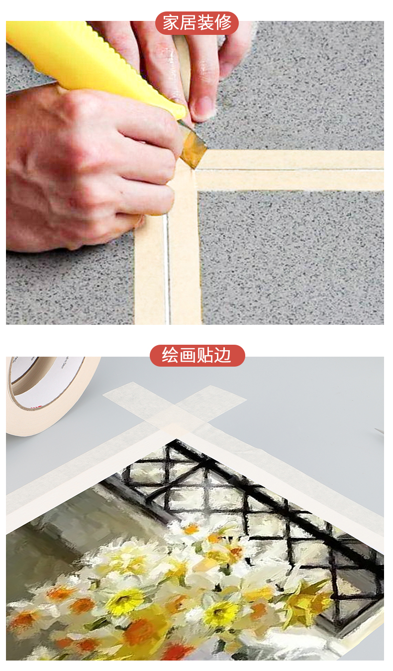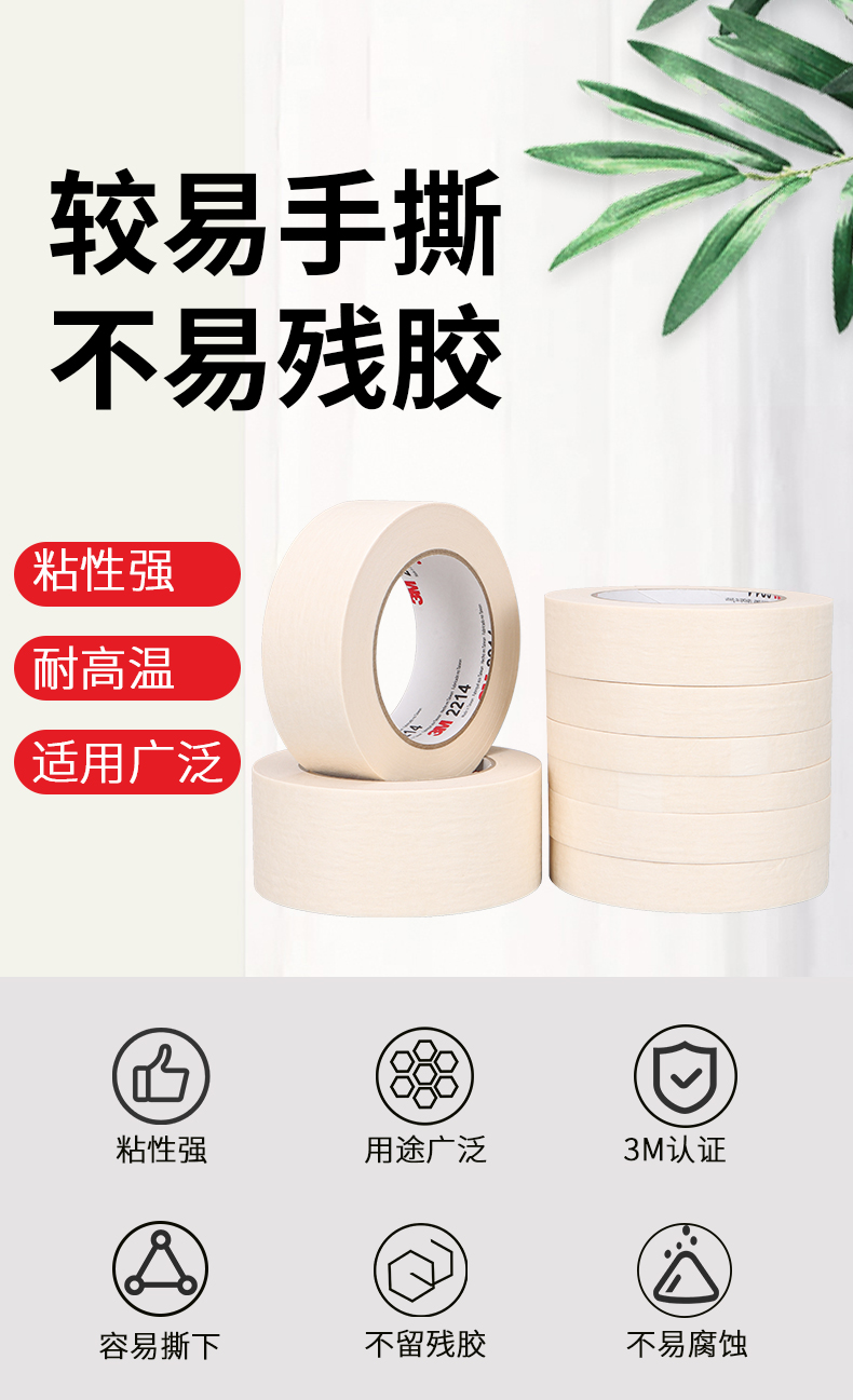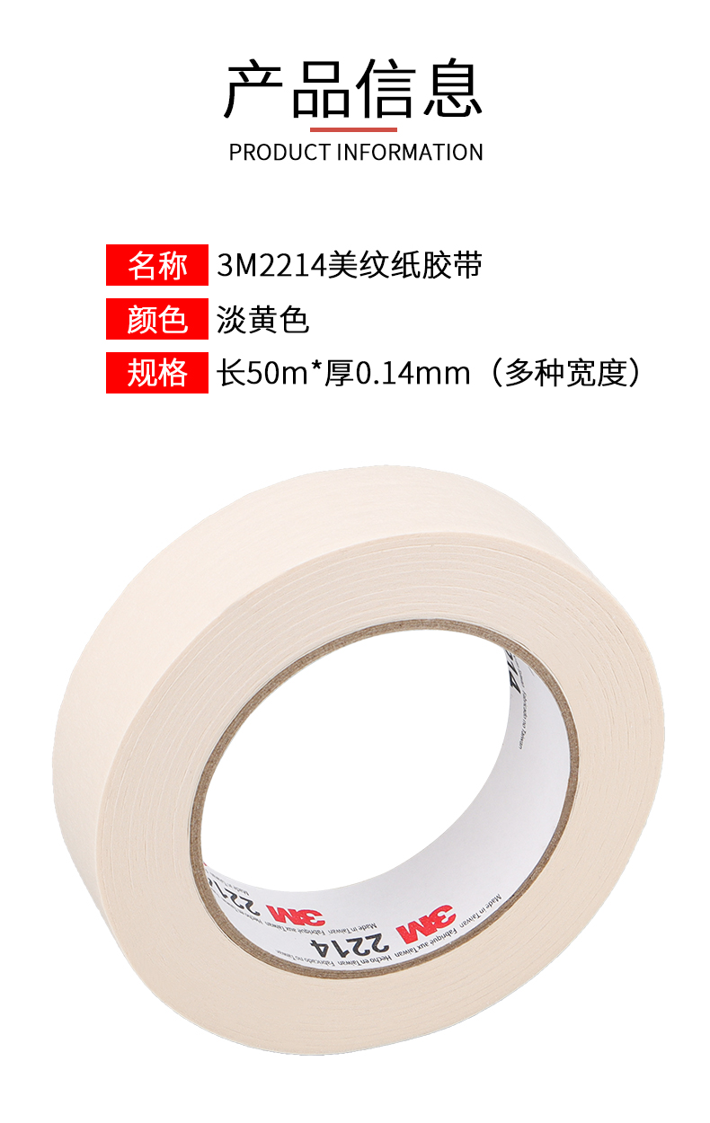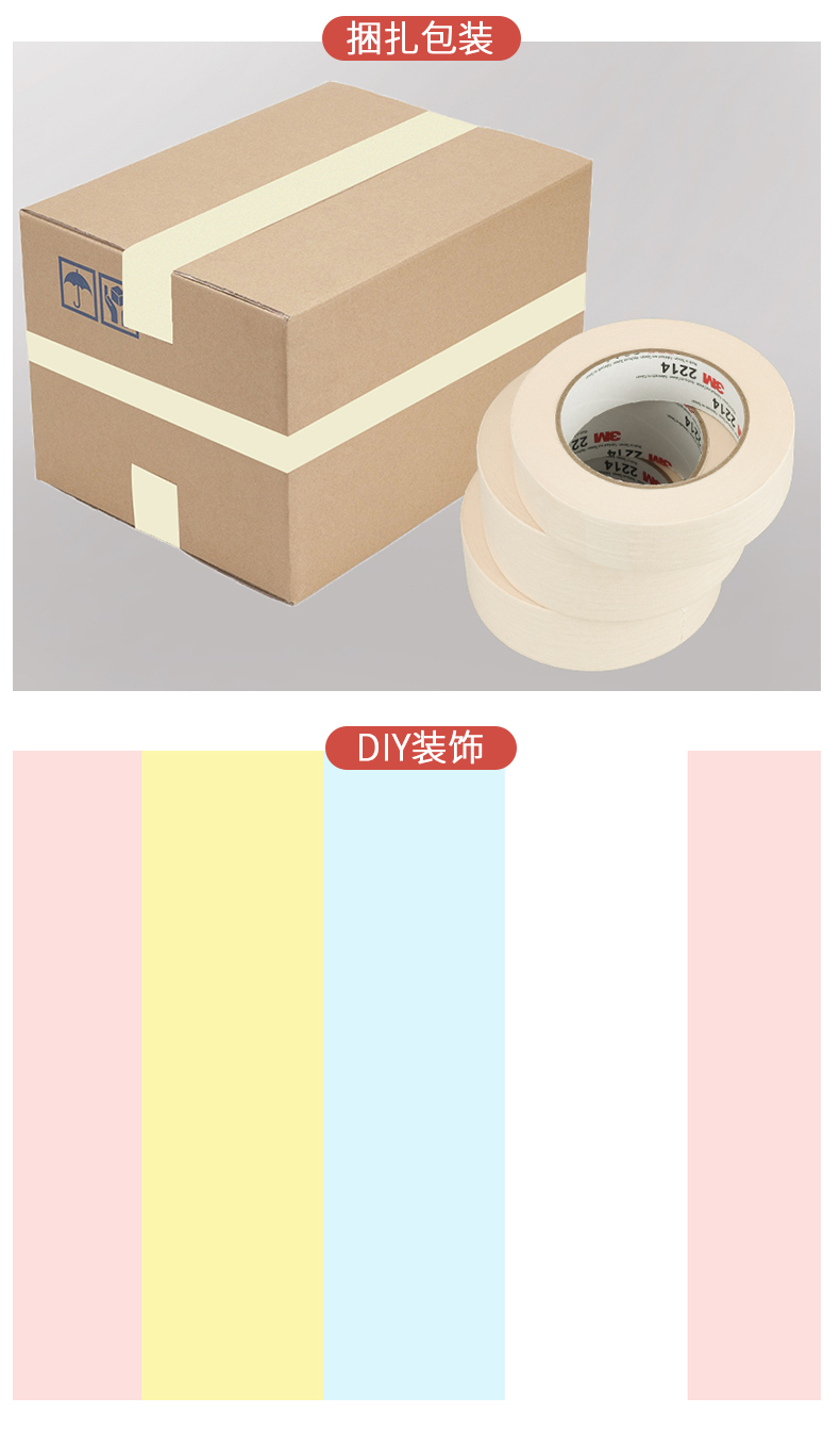 正品3M2214白色美纹纸胶带 汽车喷涂遮蔽美纹纸 加厚撕下无痕胶纸 美甲电器喷漆保护 墙壁美缝装饰美纹纸胶带