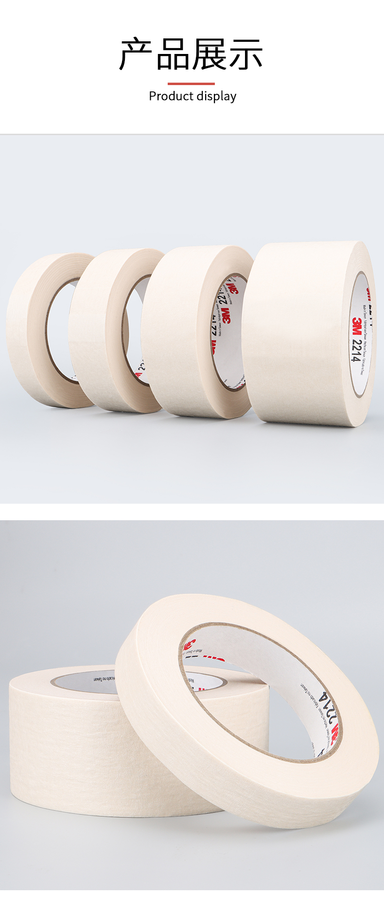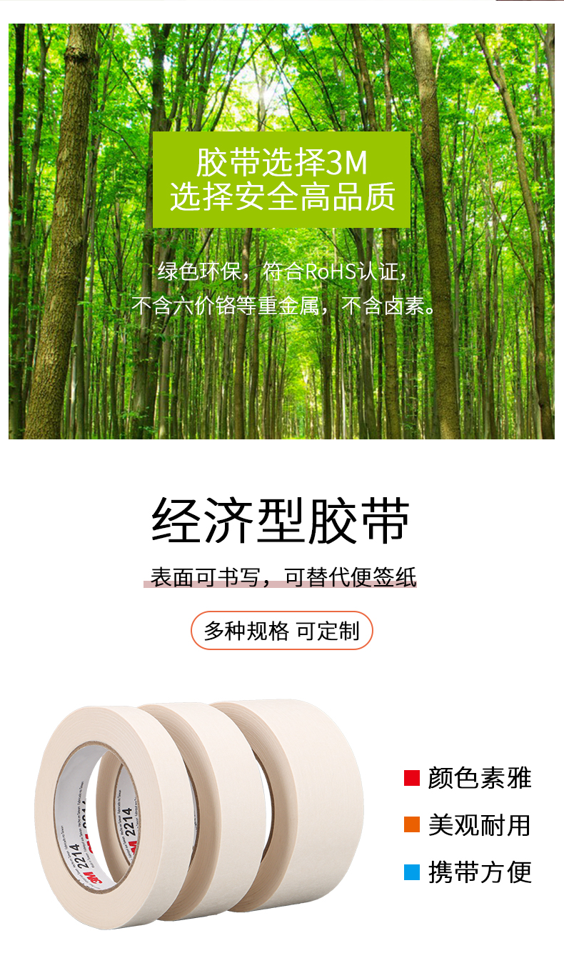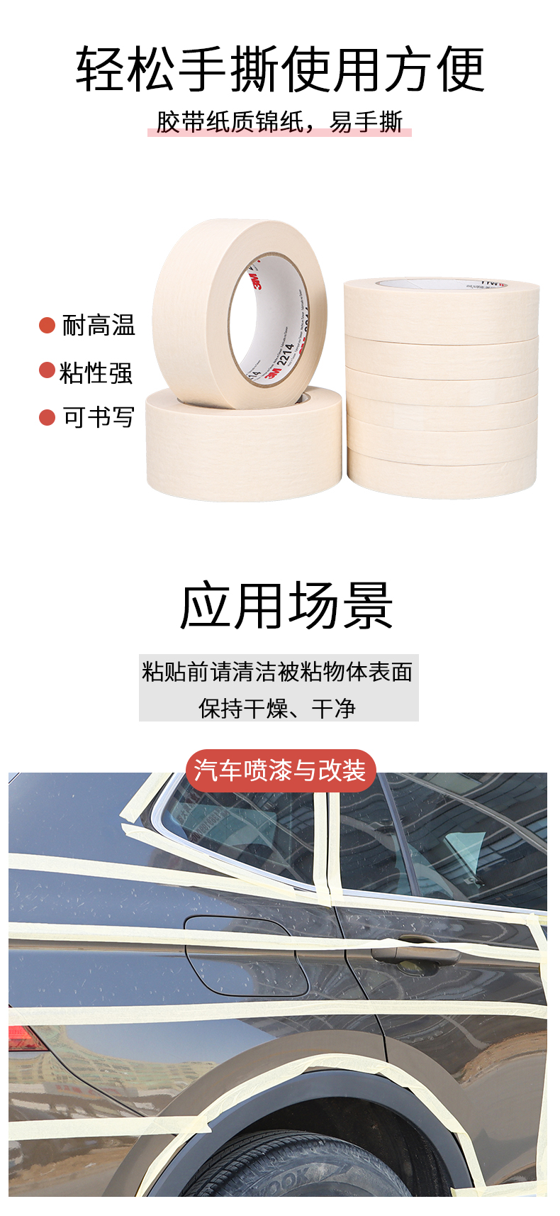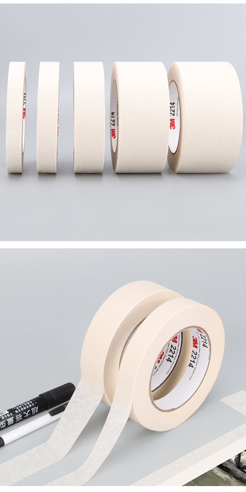 正品3M2214白色美纹纸胶带 汽车喷涂遮蔽美纹纸 加厚撕下无痕胶纸 美甲电器喷漆保护 墙壁美缝装饰美纹纸胶带