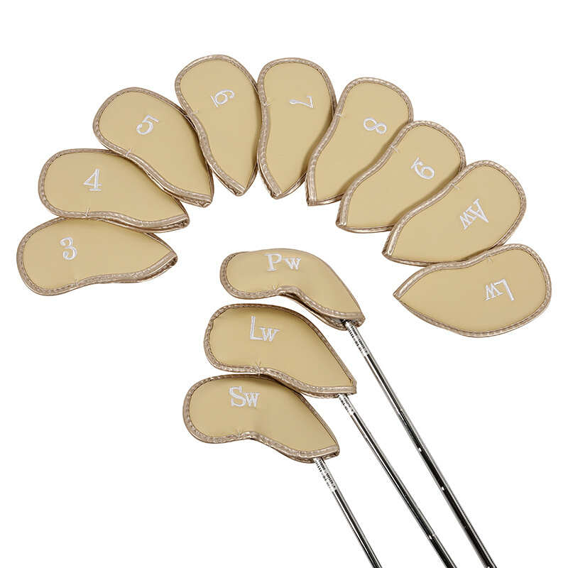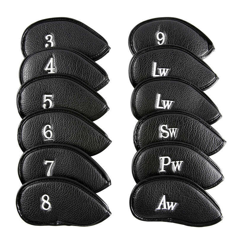工厂自供跨境现货铁杆头套帽套荔枝纹pu12只数字套组高尔夫球杆套