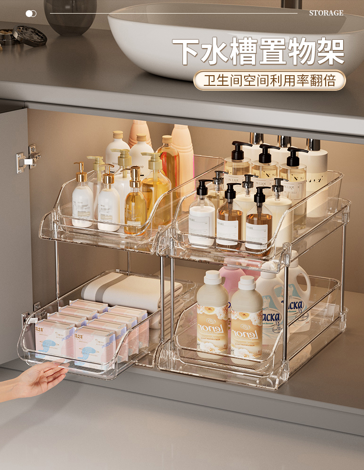 洗漱台下水槽置物架抽拉式橱柜多功能整理卫生间浴室柜收纳分层架