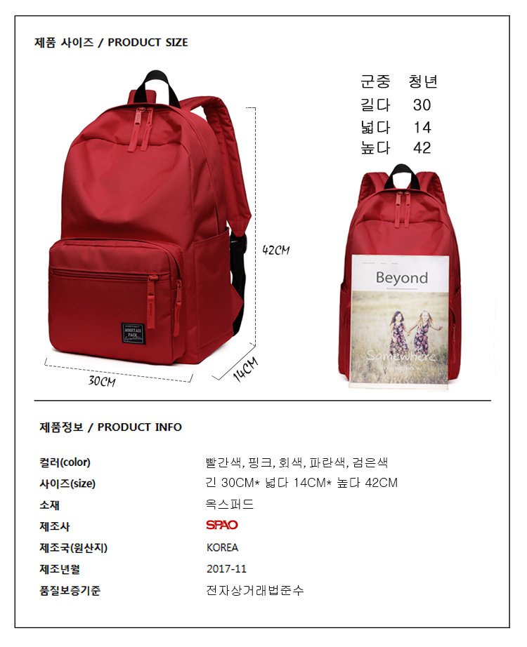 韩国SPAO新款金希澈同款男双肩包女背包潮韩版中学生书包
