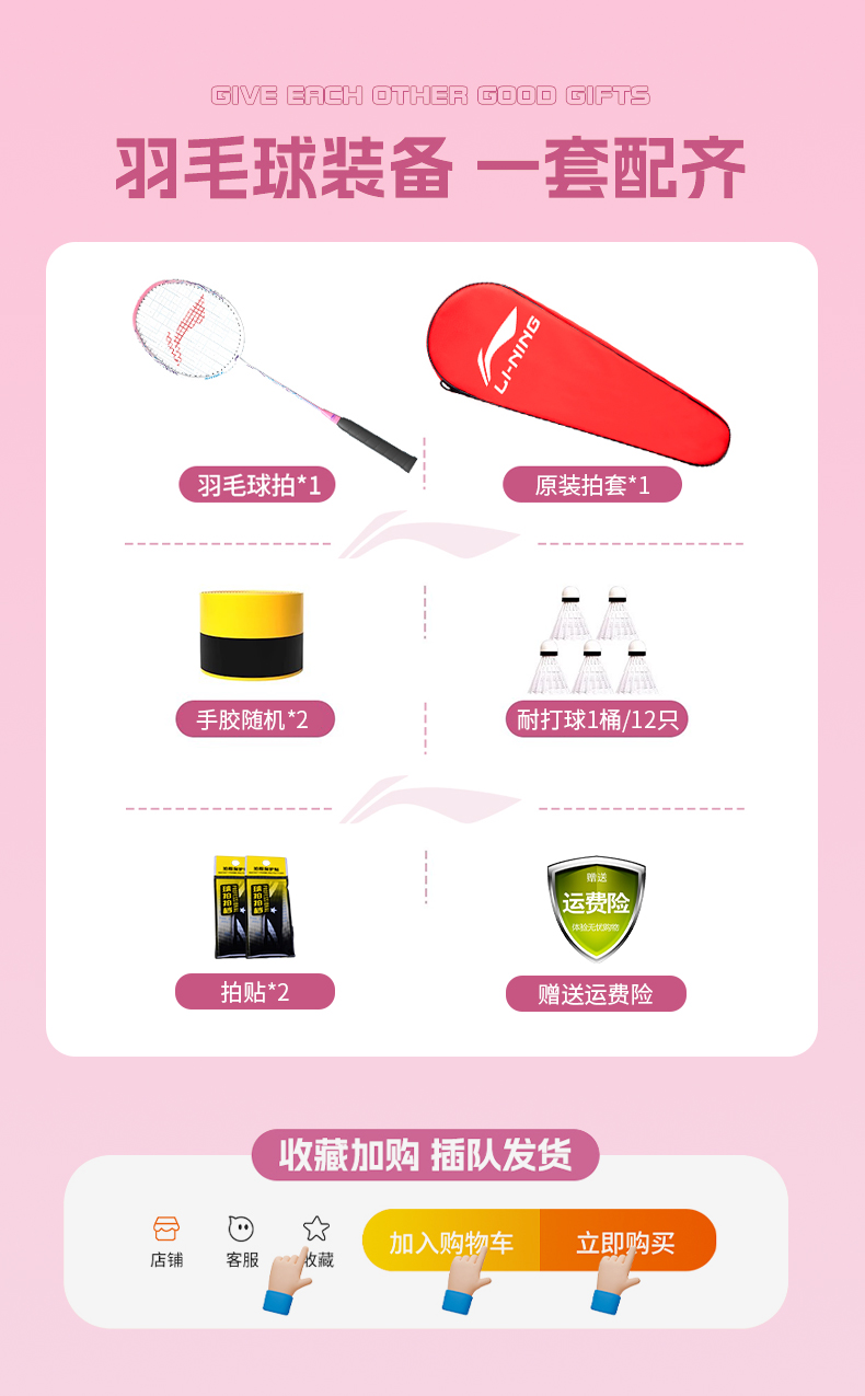 李宁羽毛球拍凯胜正品专业羽毛球套装全碳素纤维超轻耐用单双拍子