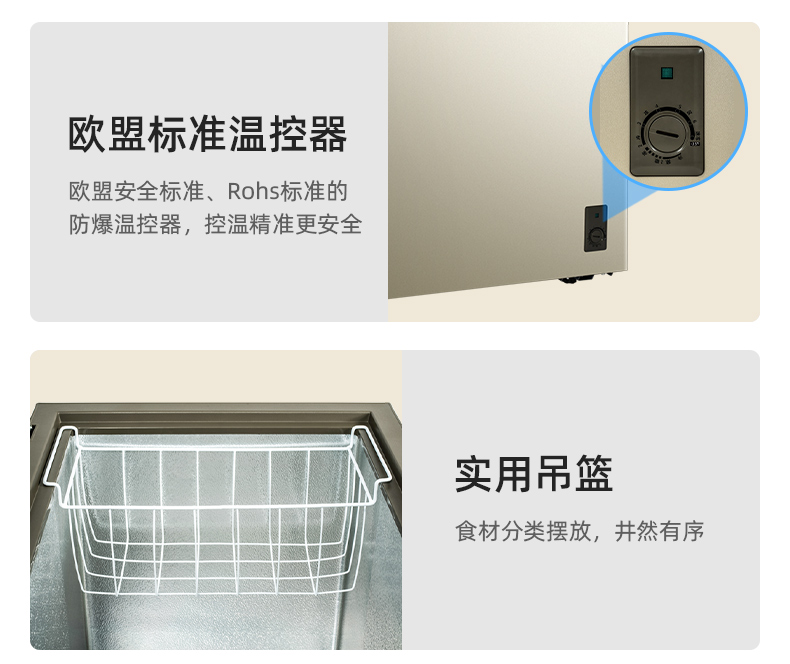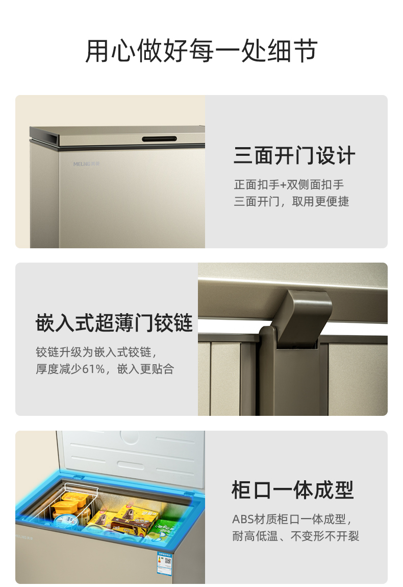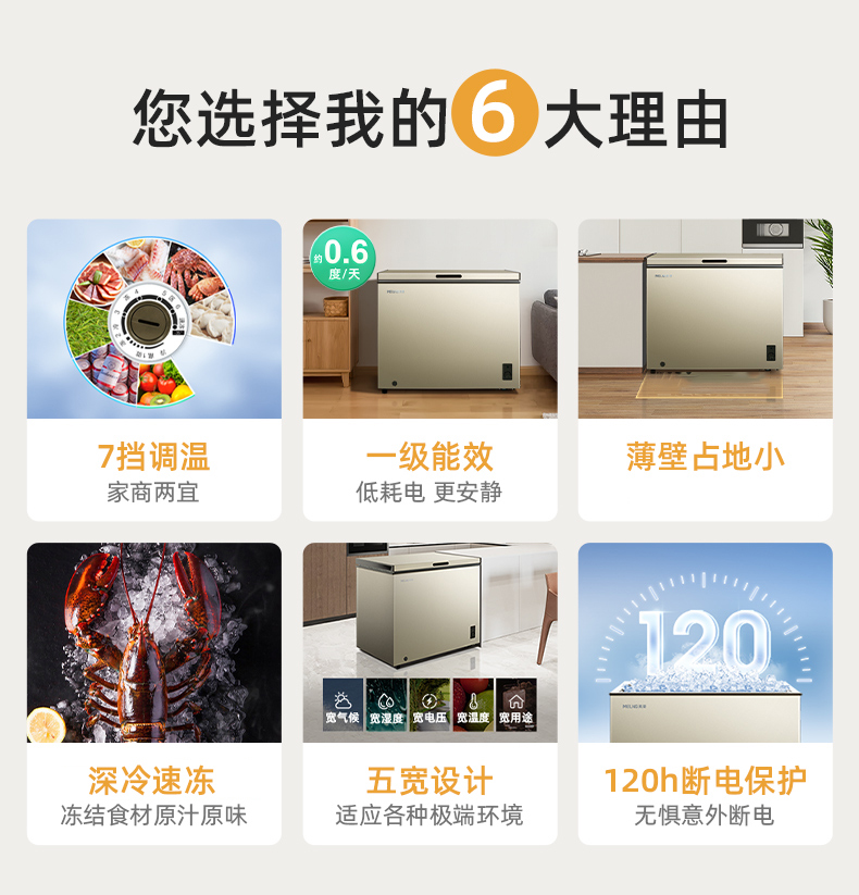 美菱冰柜减霜家用小型冷冻柜商用大容量冷冻冷藏两用卧式冷柜节能