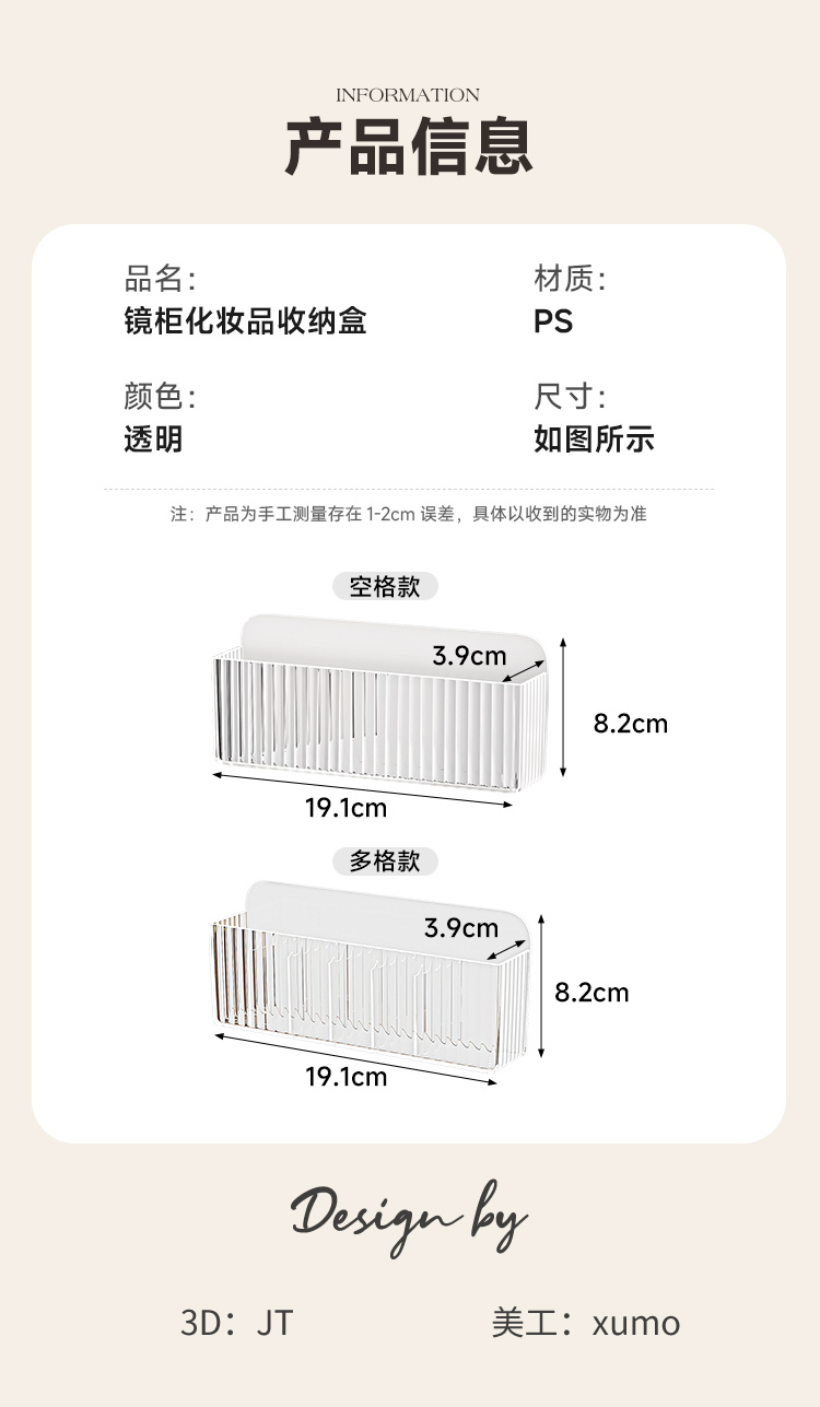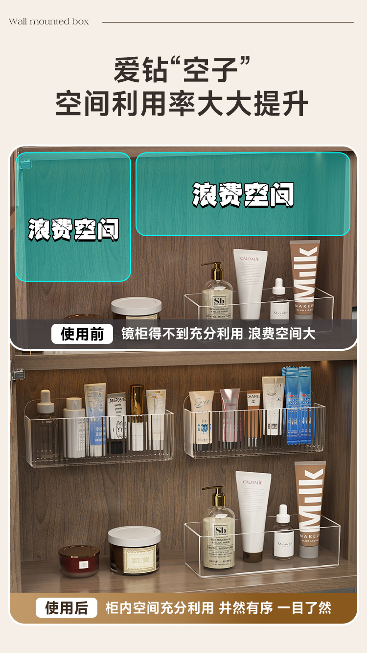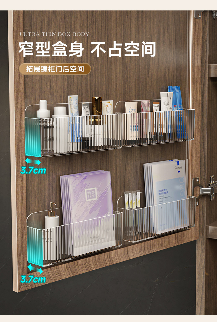 镜柜收纳盒壁挂卫生间洗漱厕所镜门后口红化妆品面膜浴室柜置物架