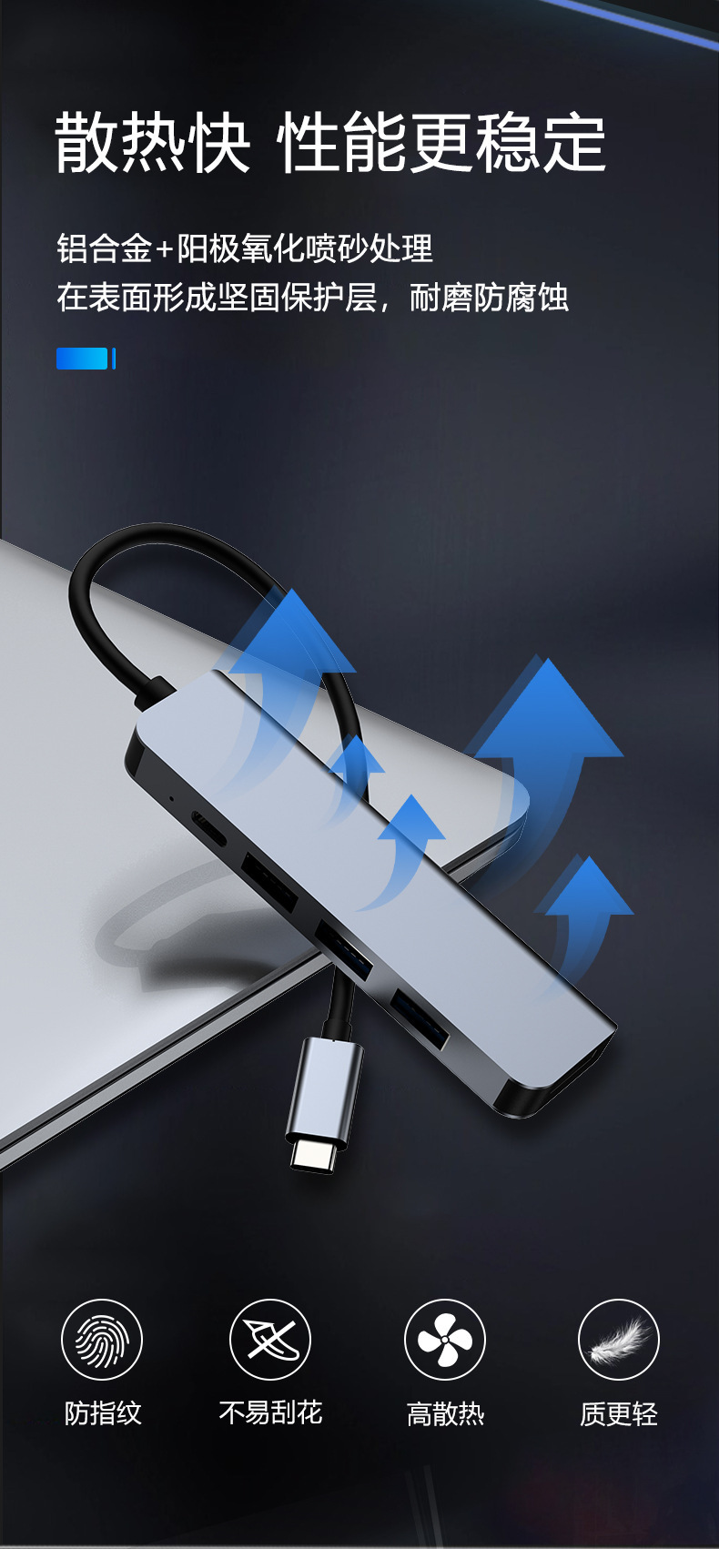 斐酷FK TYPE-C拓展坞usb hub扩展器多功能集线器笔记本电脑扩展坞