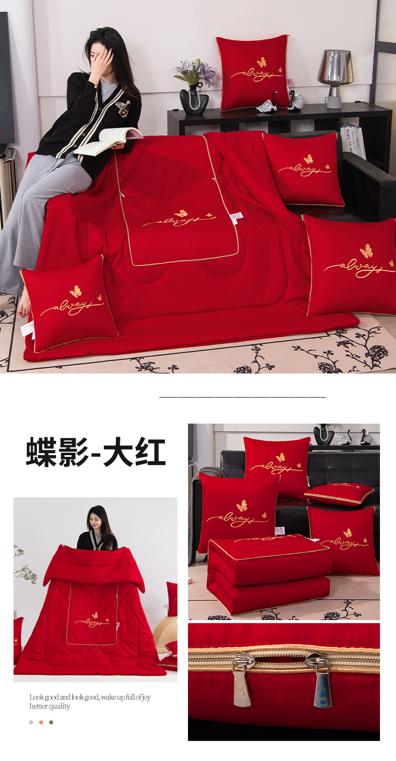A类高档简约纯棉两用抱枕被二合一汽车靠垫沙发办公室午休折叠被