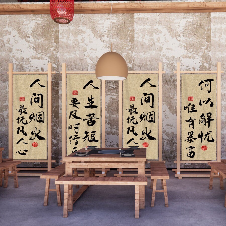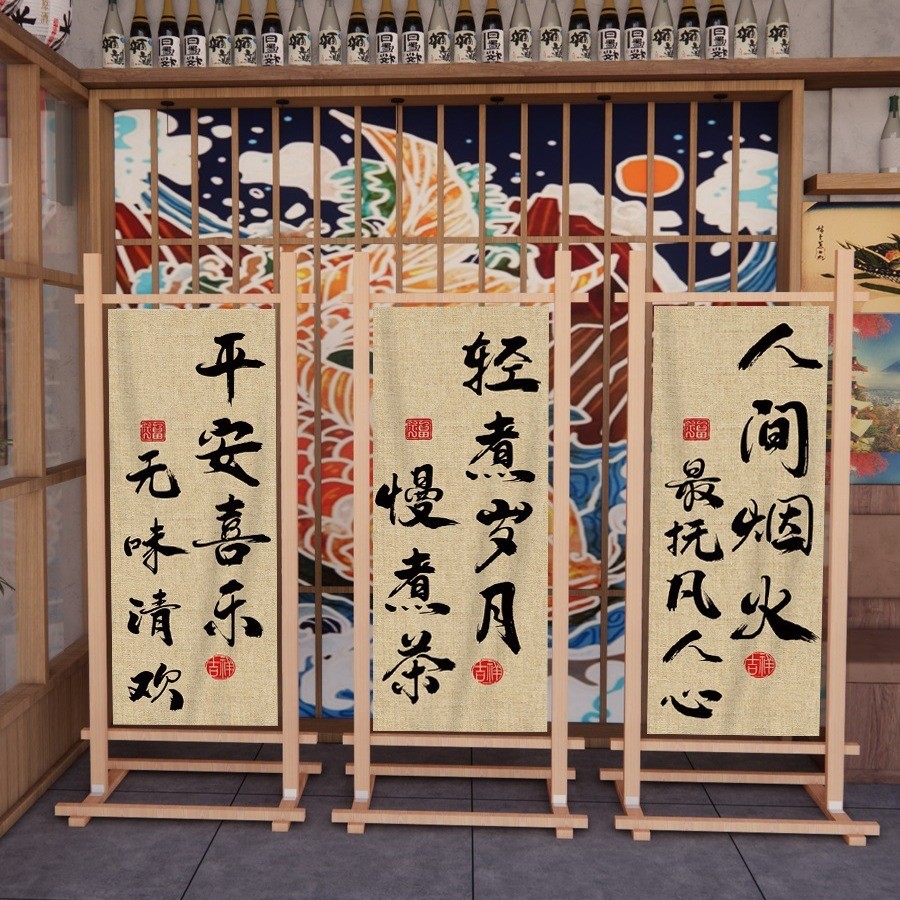 茶室布艺挂布装饰氛围背景布工业风隔断帘屏风装饰布置广告布帘子