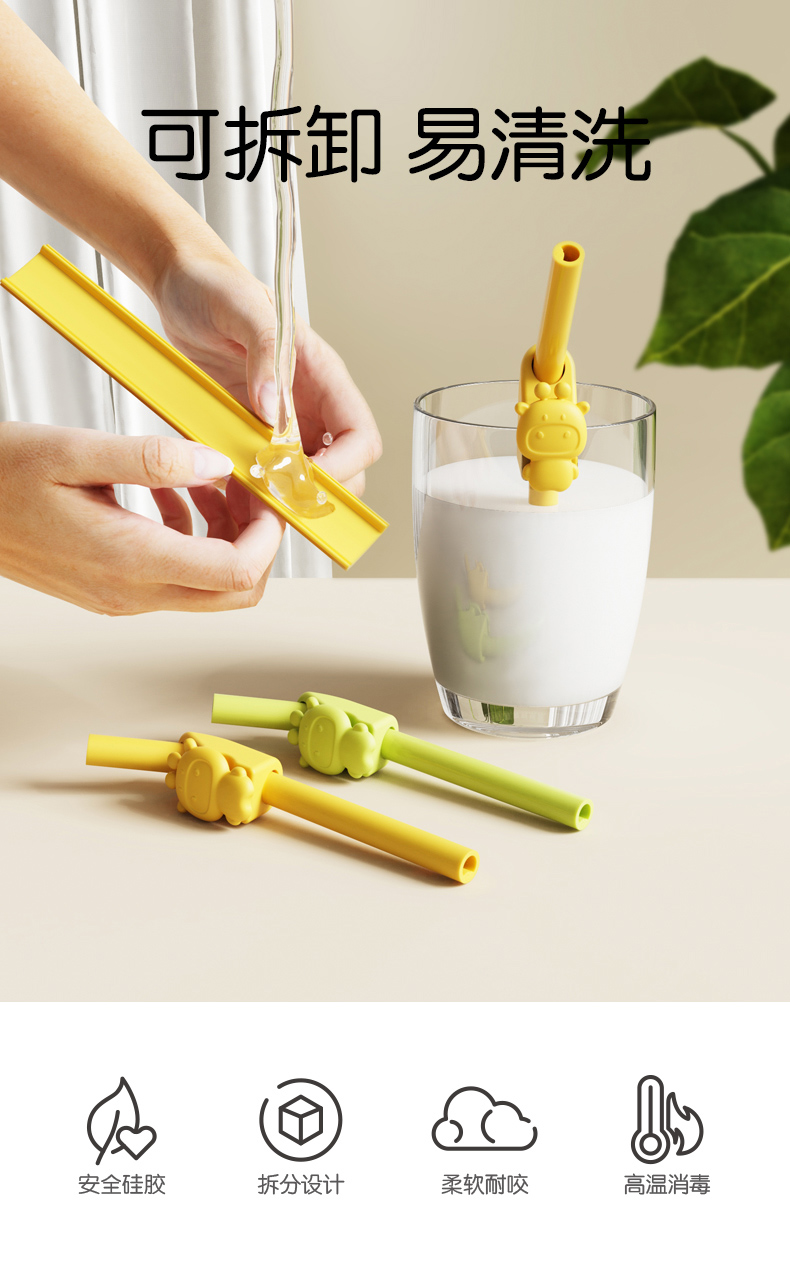 宝宝吸管喝汤喝水神器儿童硅胶带卡扣辅食专用婴儿喝粥可拆洗防呛