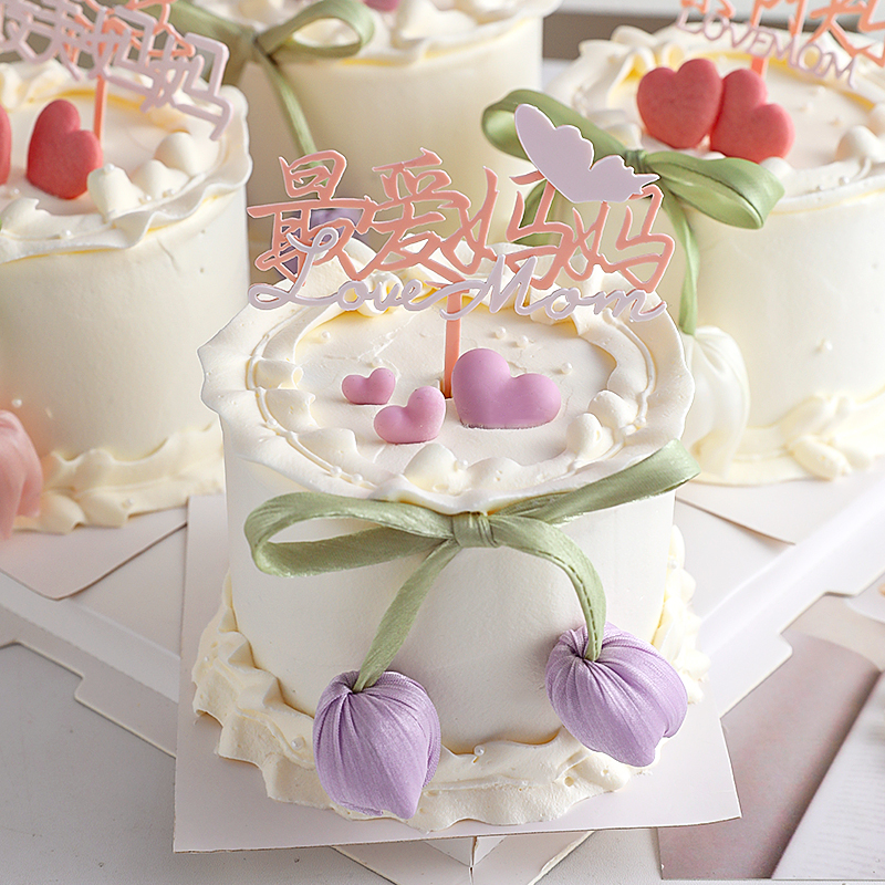 网红母亲节郁金香花苞蛋糕装饰妈妈节日快乐双层亚克力插牌插件