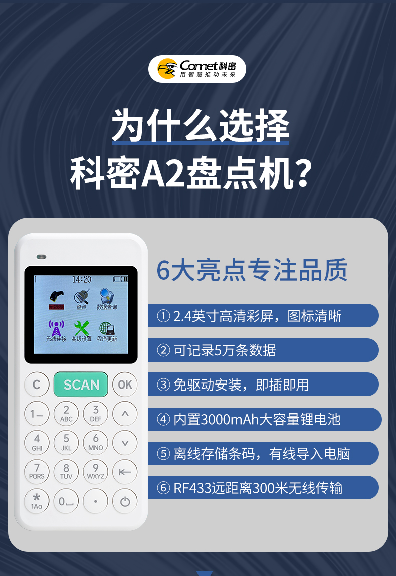 Comet科密A2超市库存盘点机无线仓库条码数据采集器pda进销存手持扫码盘点枪终端快递巴枪数据采集器