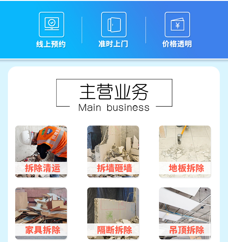上海拆除拆旧服务敲墙砸墙拆除家具橱柜地板浴缸切割墙体垃圾清运