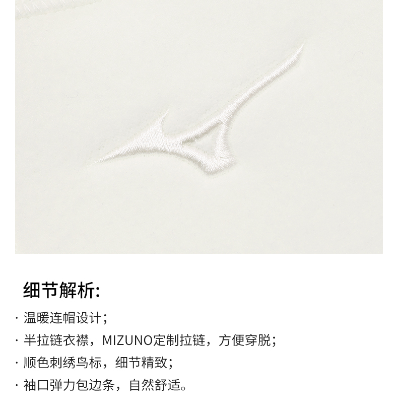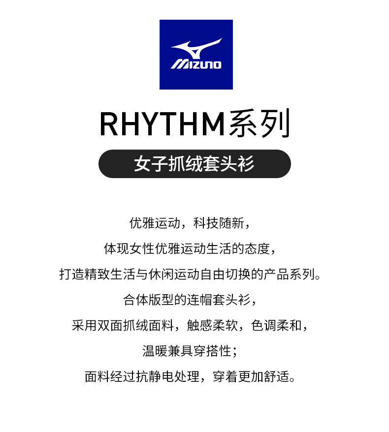 Mizuno美津浓女子修身保暖舒适抓绒连帽卫衣套头衫RHYTHM系列