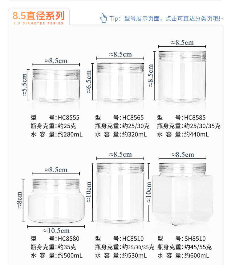85透明盖塑料瓶手拧大号密封罐食品级存储罐广口瓶颜料瓶蜂胶瓶子