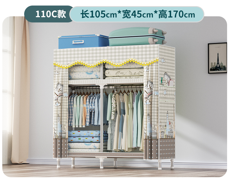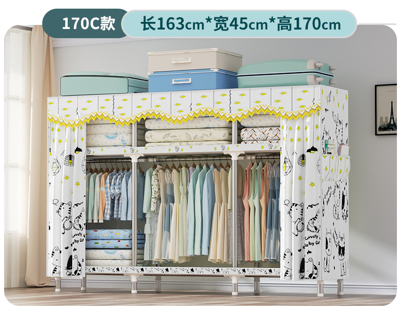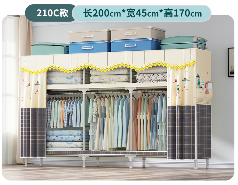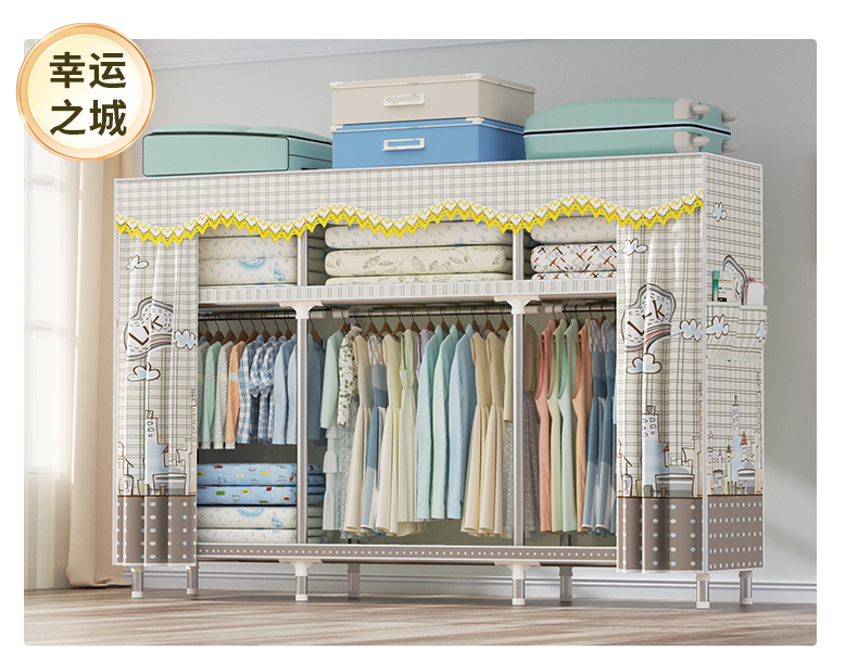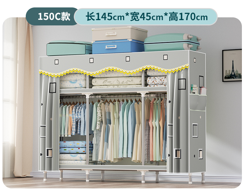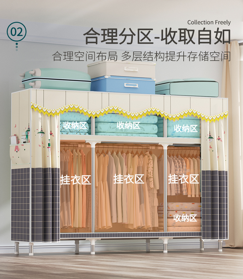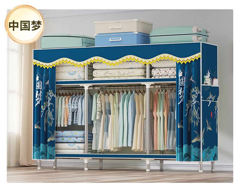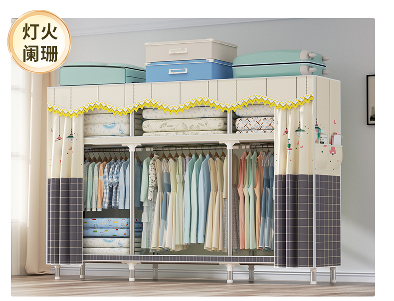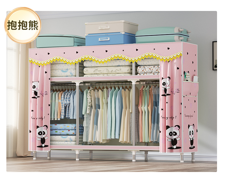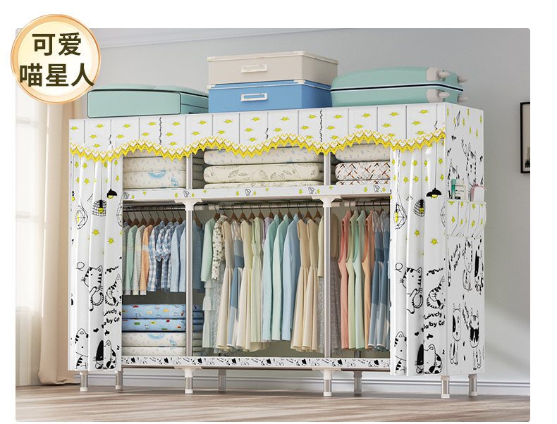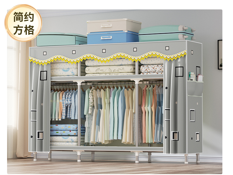 衣柜家用卧室全钢架组装简易布衣柜出租房收纳结实耐用经济型衣橱