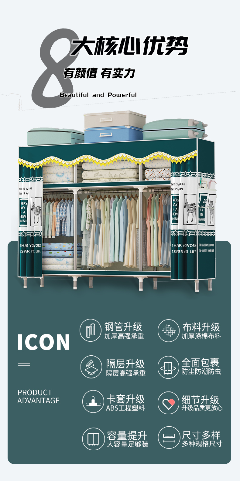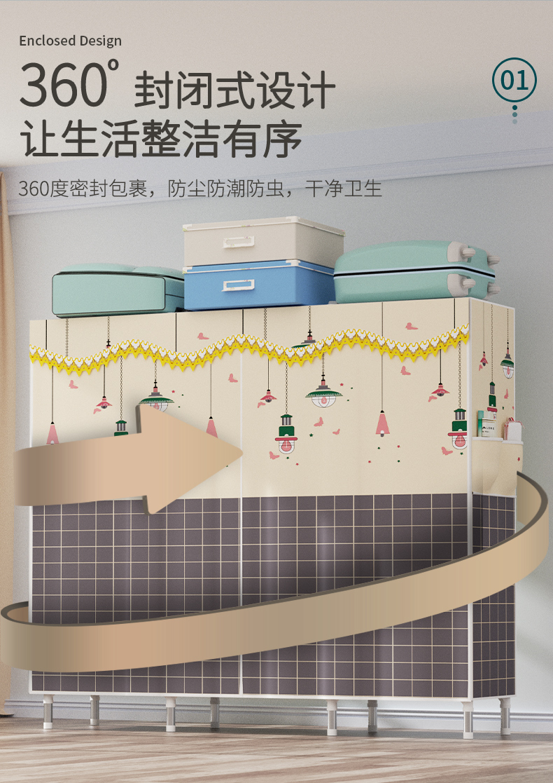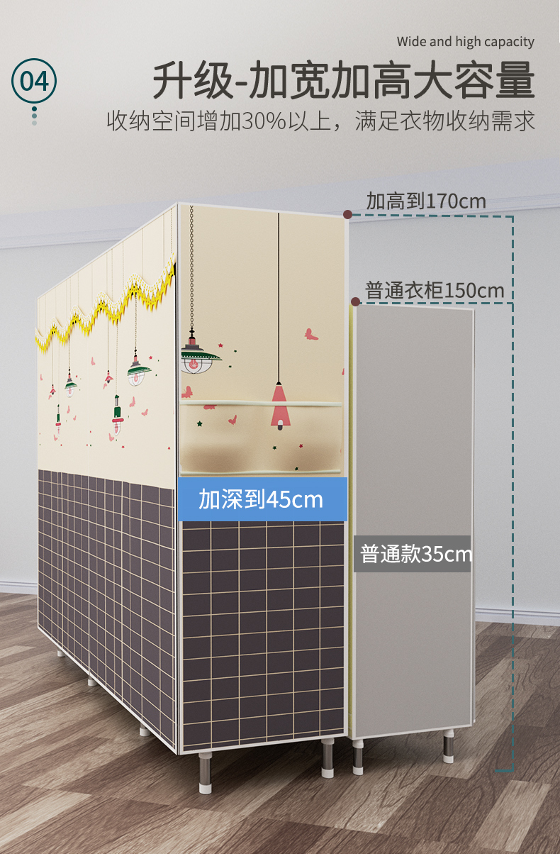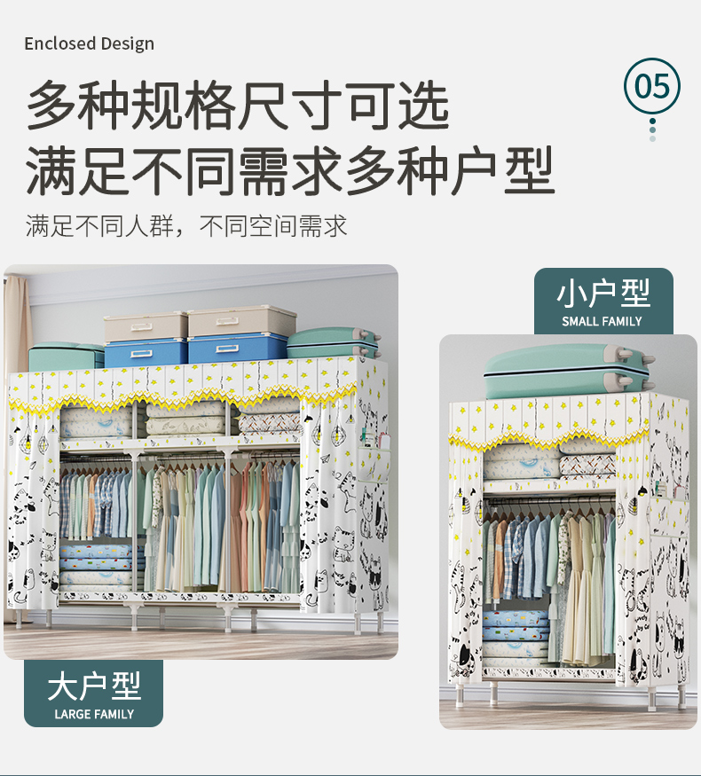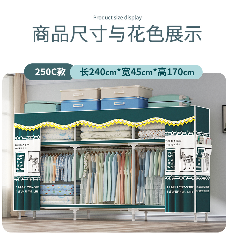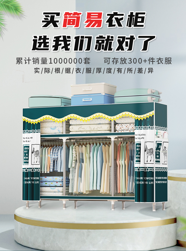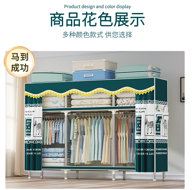 衣柜家用卧室全钢架组装简易布衣柜出租房收纳结实耐用经济型衣橱
