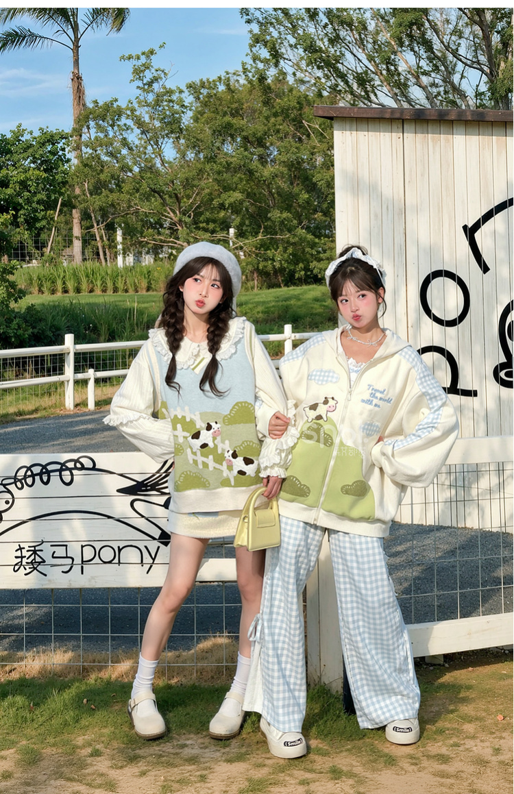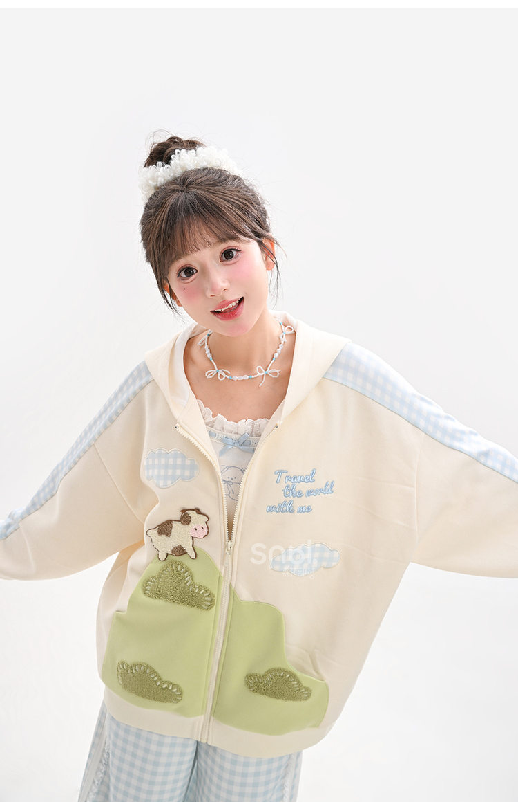 森女部落原创可爱萌趣撞色学生女装外套连帽休闲卫衣2025早春新款