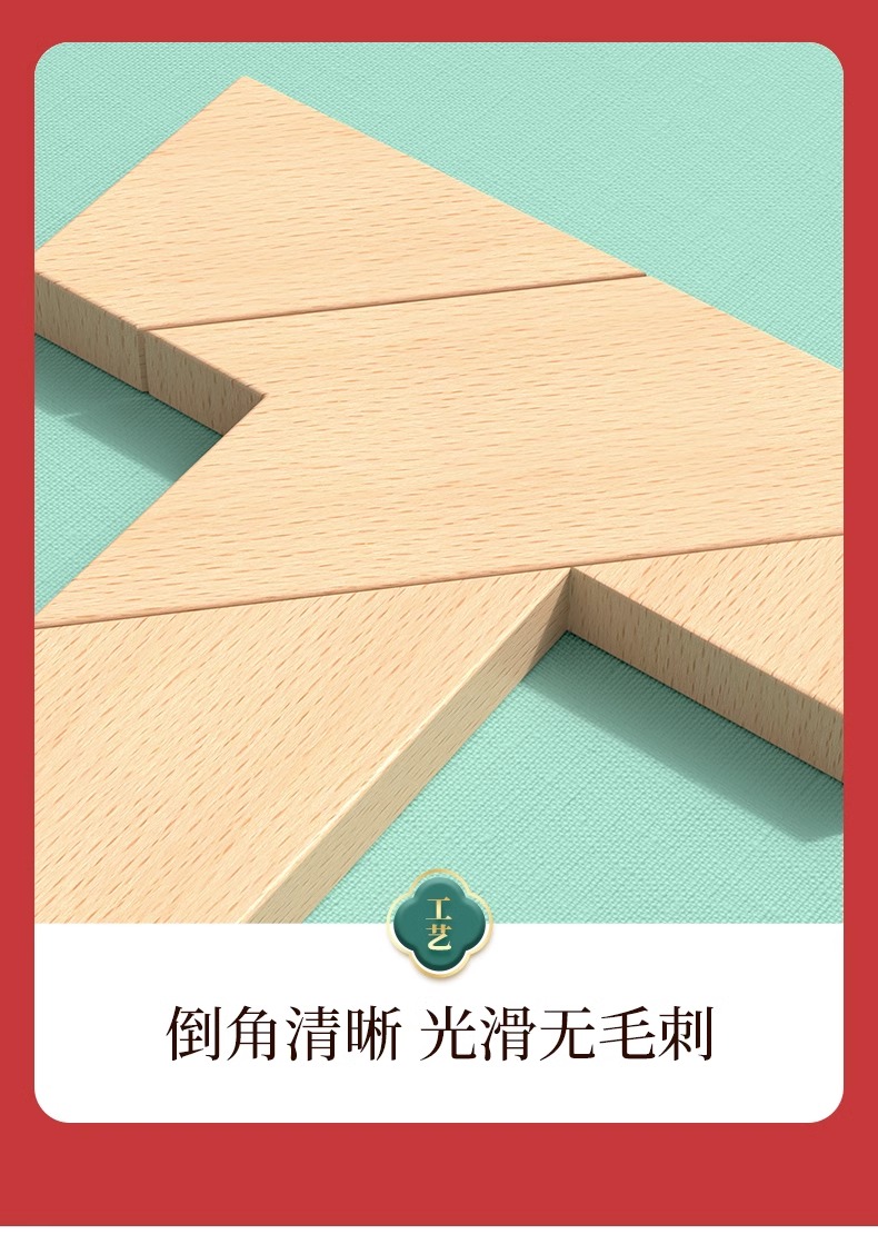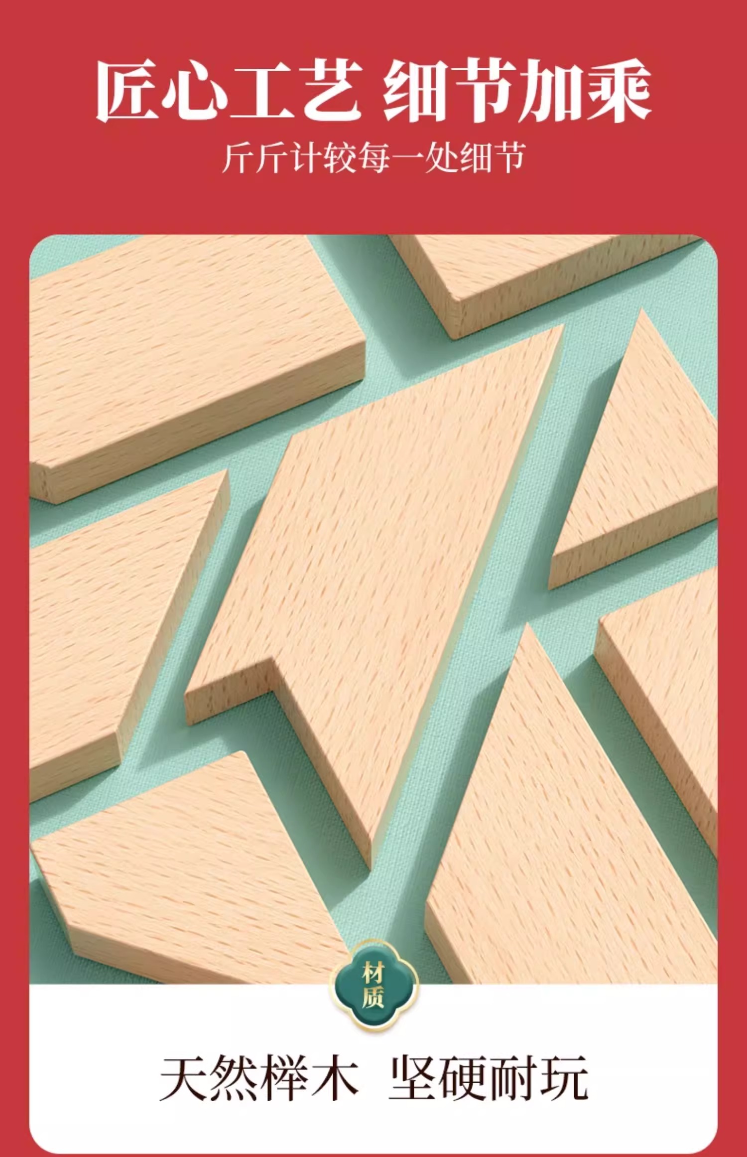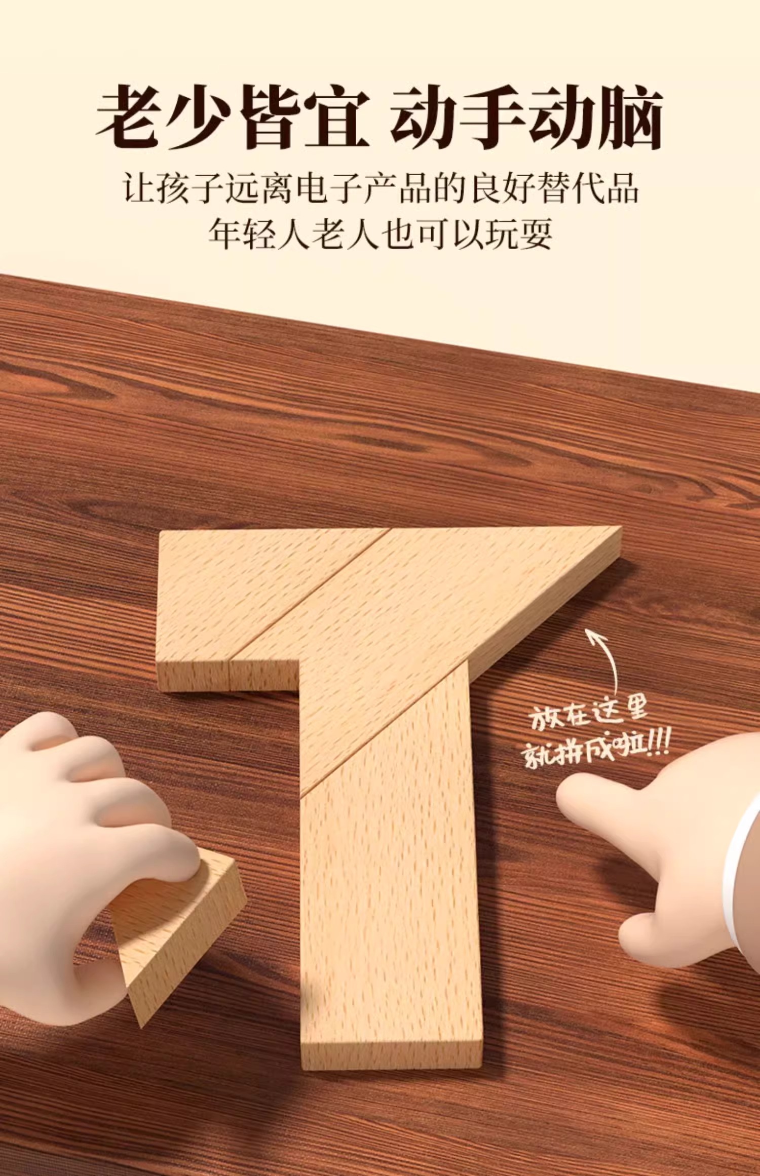 榉木长条T字之谜益智玩具四巧板智力木制积木拼图七巧板儿童拼板