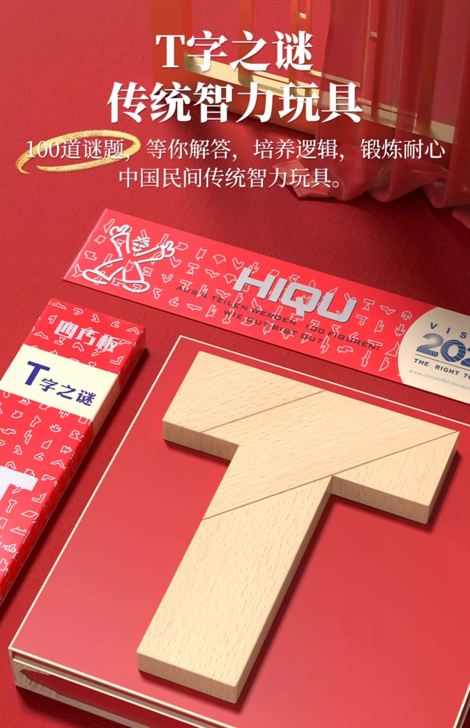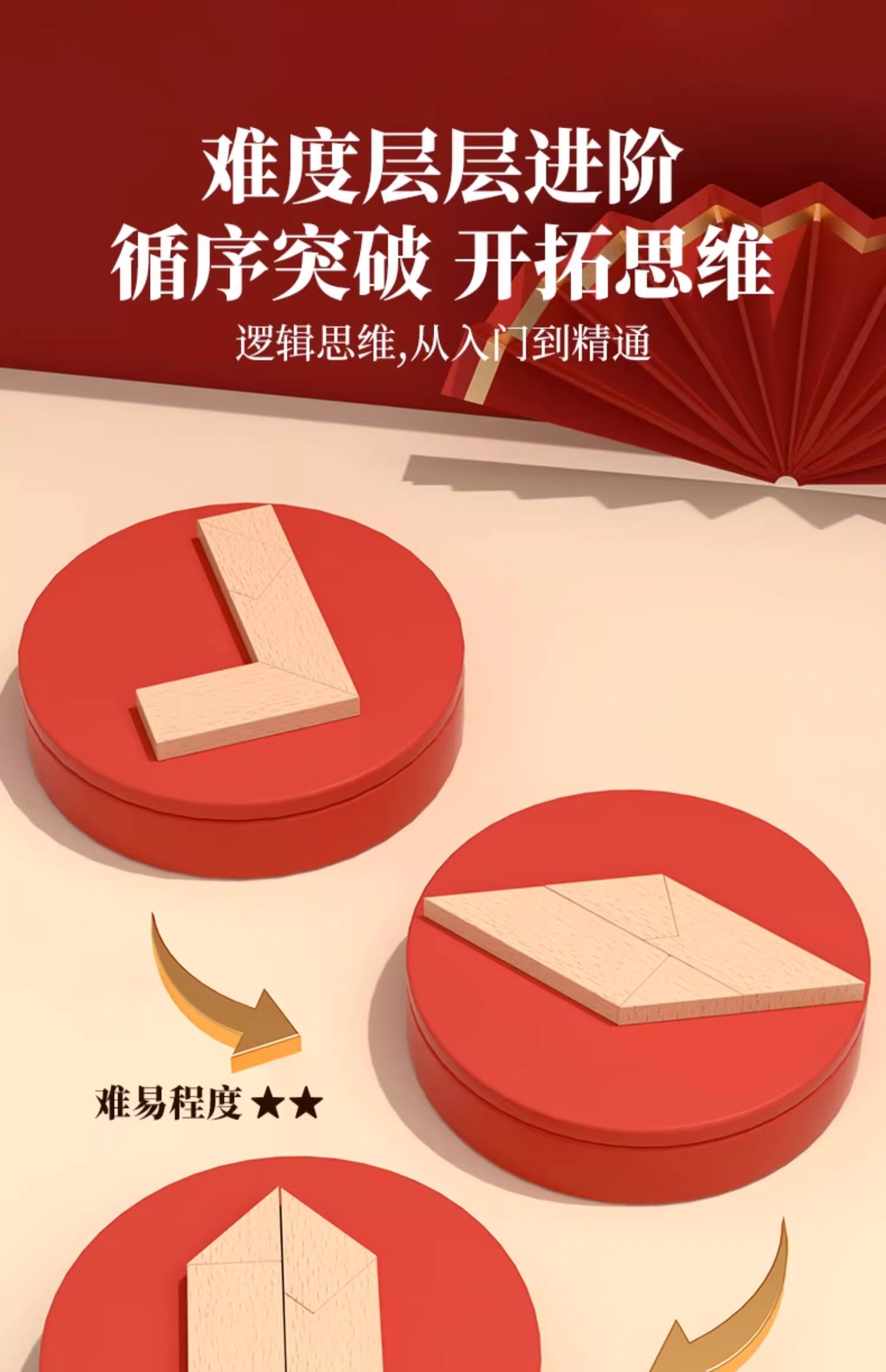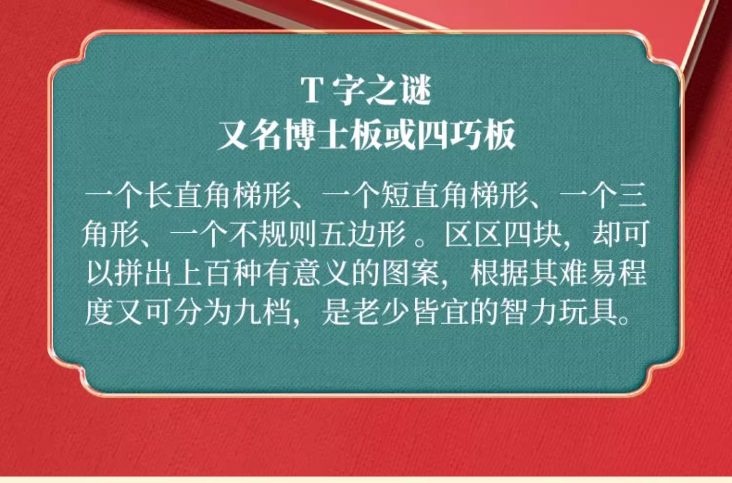榉木长条T字之谜益智玩具四巧板智力木制积木拼图七巧板儿童拼板